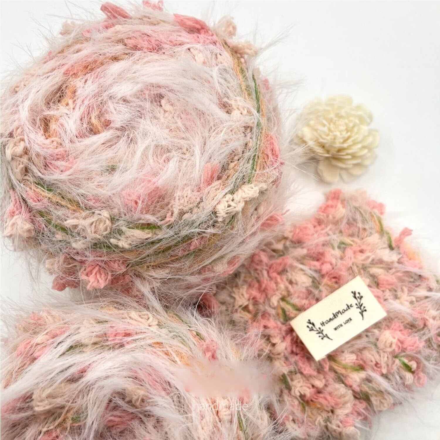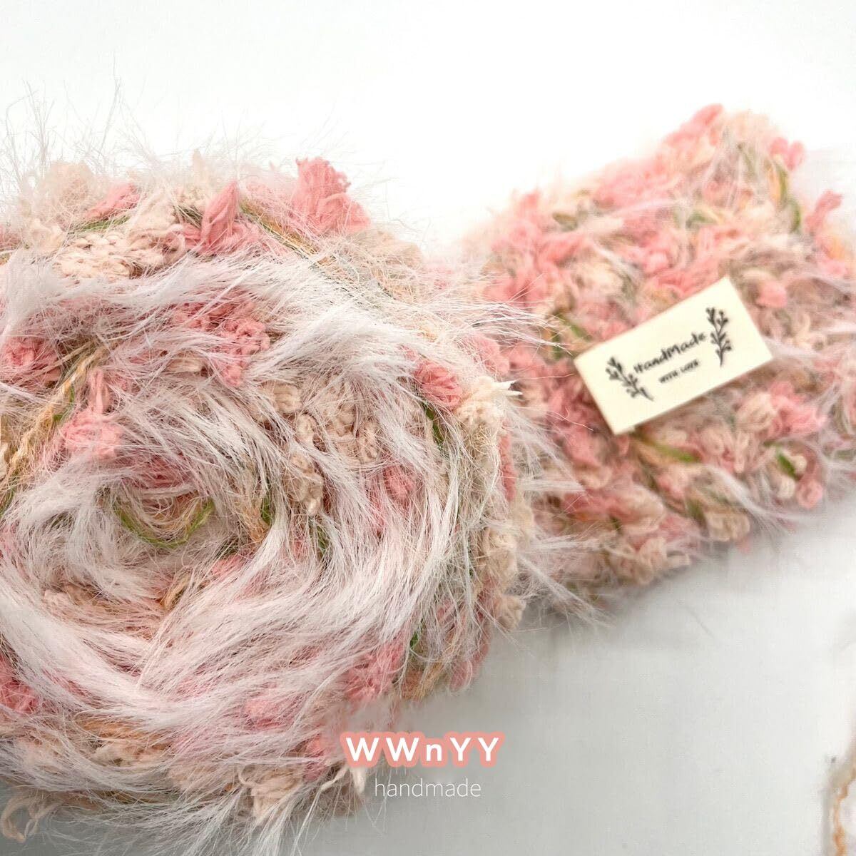 毛糸 混紡毛糸 カラフル 編み糸 ふわふわ ファンシーヤーン 並太 極太 織り楽 フワフワケイト ハンドメイド バッグ 装飾 ヘアピン 手袋 マフラー ネックレス 服 帽子 (ピンク, 1玉50g/2玉セット)