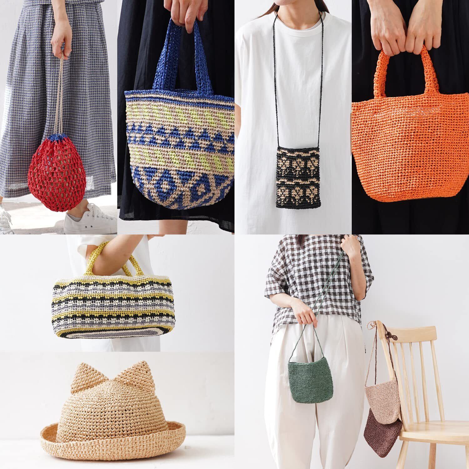 麦わら帽子のような質感で編みあがる、紙の糸。丈夫な紙がテープ状になっています。暑い夏にうれしい、風通しが良く、さらっとした手触り。帽子はもちろんバッグにもおすすめです。職人の手によって、ムラのない美しい色に染めあがっています。