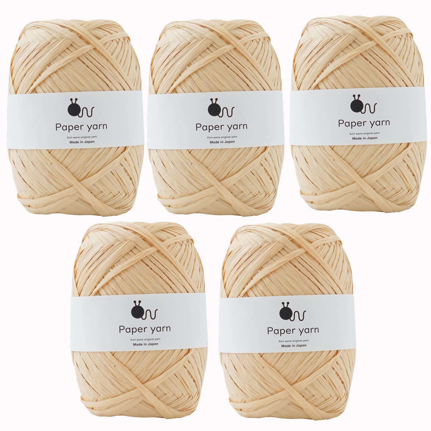原ウール ペーパーヤーン 極太 30g(約77m) 紙100% 日本製 5玉セット 2.ストローイエロー