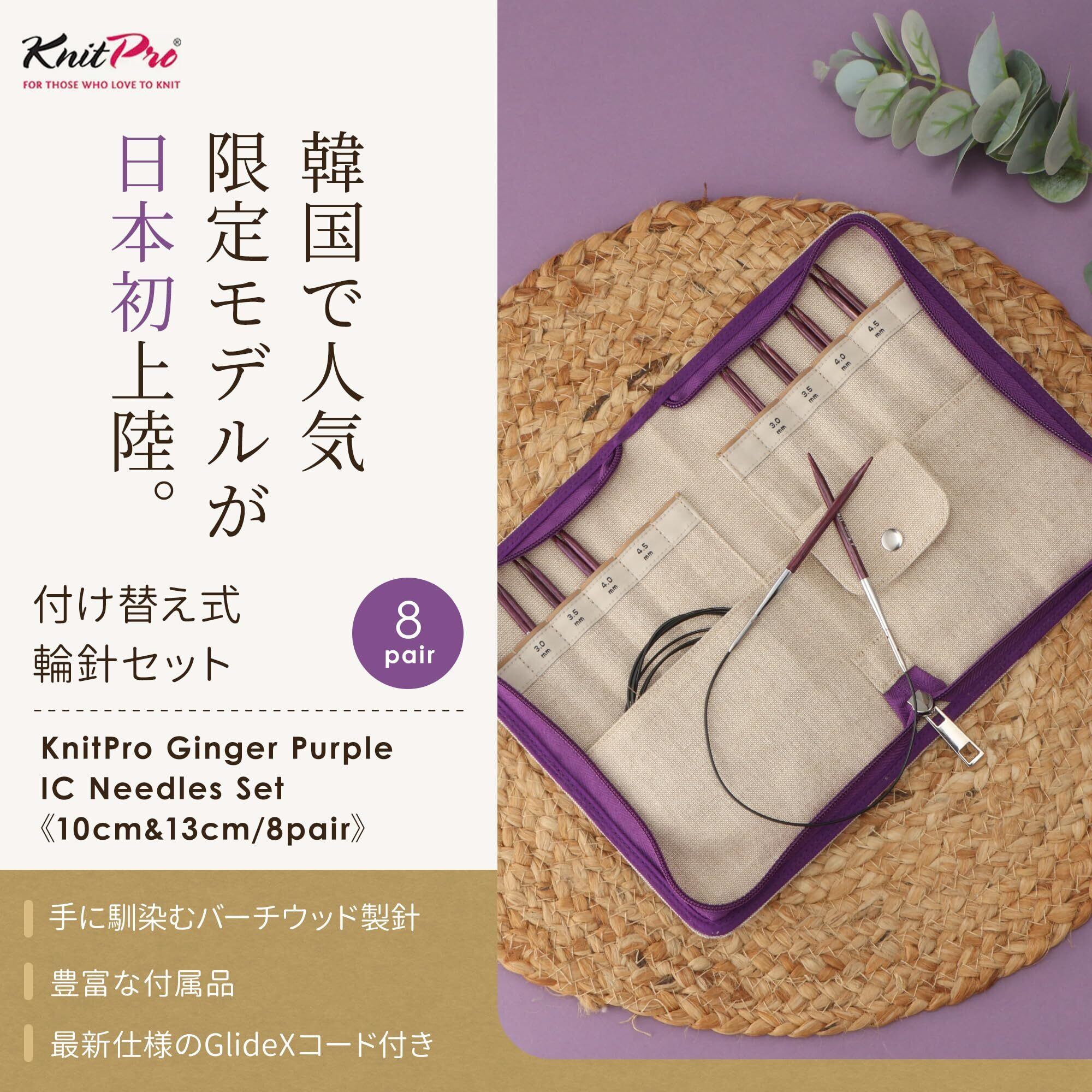 KnitPro Ginger Purple 付け替え式輪針セット 10cm & 13cm 8ペア GlideXコード採用 ニットプロ ジンジャーパープル 31601 高品質 編み物 手芸