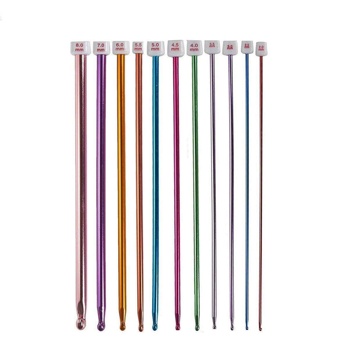 【商品紹介】:素材:アルミニウム、長さ:27cm、外観は優美で、針体は滑らかで、手触りはよいです。かわいい色で、プロにも初心者にもお買い得な11点セットの編み針セットです。