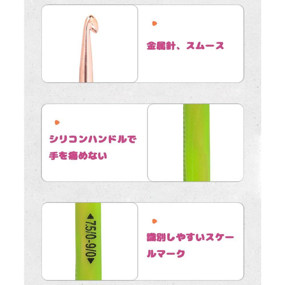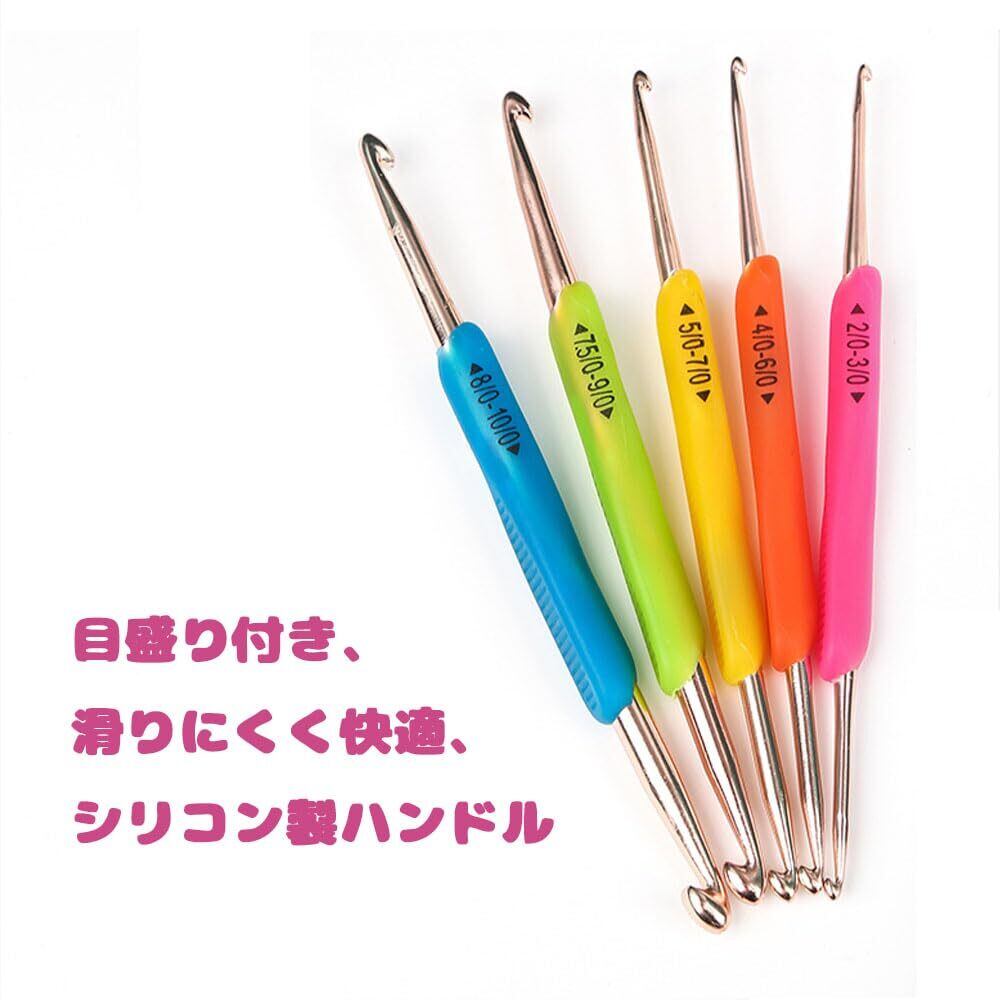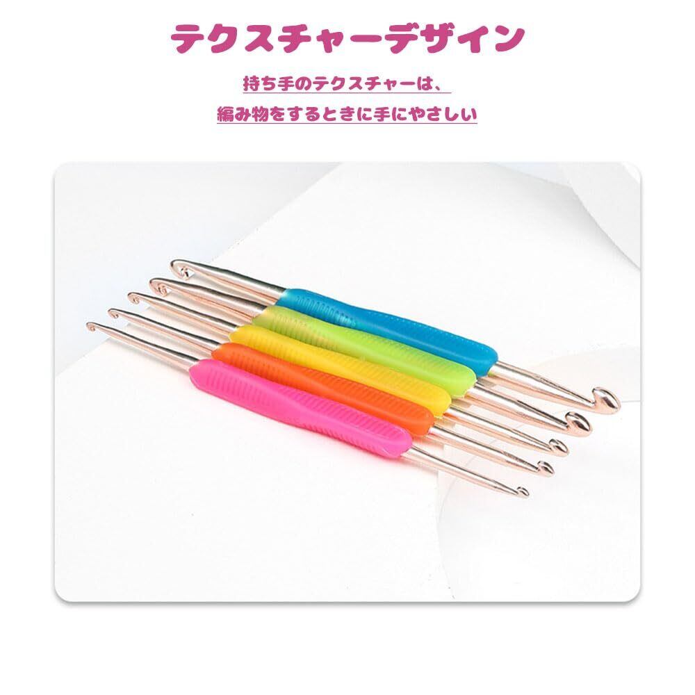 【快適】疲れることなくかぎ針編みを楽しめます! かぎ針キットのかぎ針は、ソフトなゴム製グリップ付きで、不快感を和らげます。