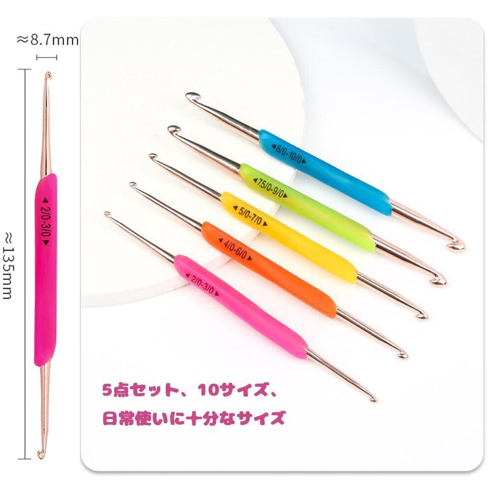 BIUTEFOR かぎ針セット かぎ編み ダブルフック 毛糸 DIY 工具 ソフトラバー 手芸 5本セット