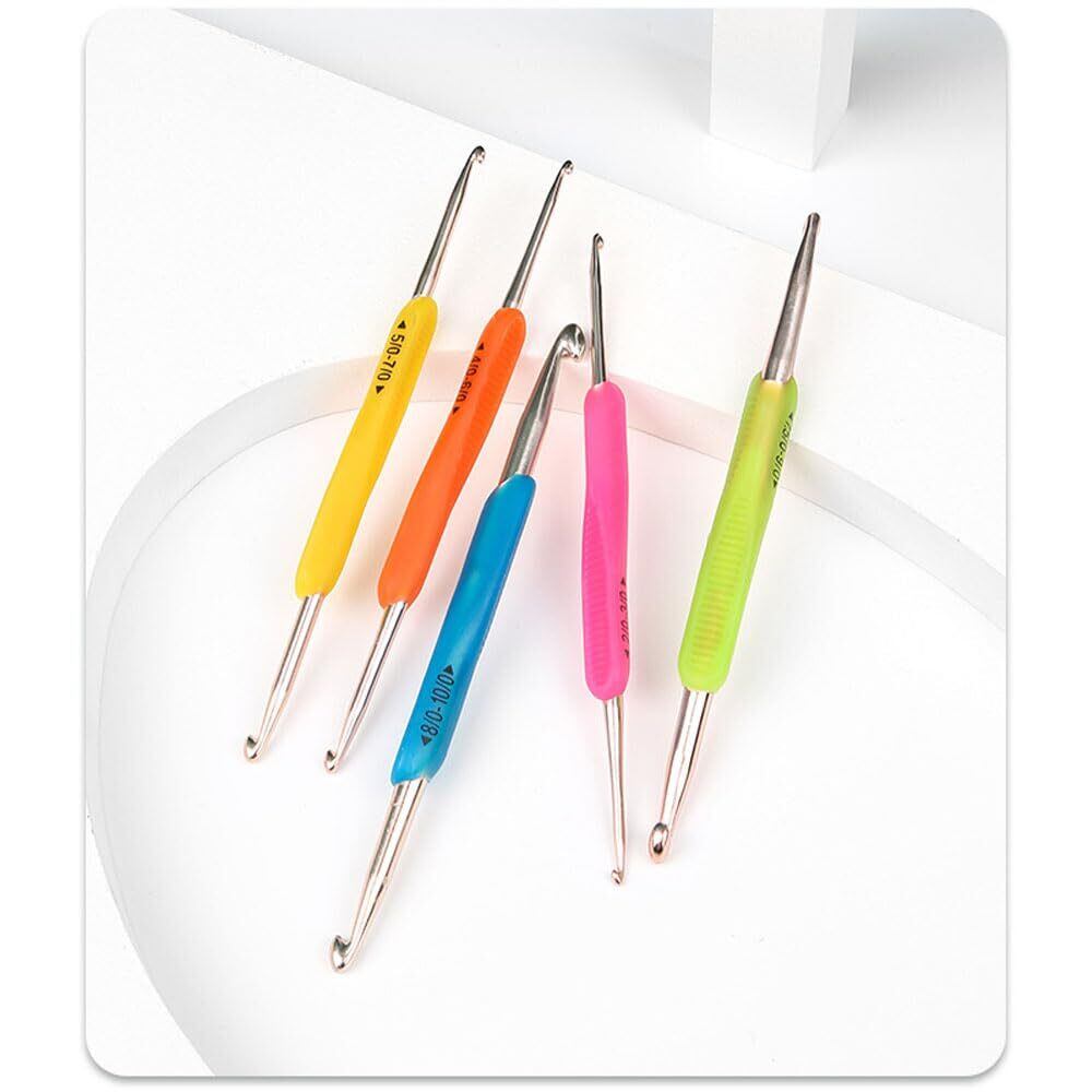 1.【快適】疲れることなくかぎ針編みを楽しめます! かぎ針キットのかぎ針は、ソフトなゴム製グリップ付きで、不快感を和らげます。 2.【使いやすい】長さのあるアルミ製かぎ針は、毛糸が滑ったり引っかかったりしないよう、先が滑らかになっています。 3.【ラベル付き】かぎ針は色分けされており、柄の部分にはアルファベットと数字がプリントされています。どの針がどの針なのかを常に知ることができる。 4.【パッケージ内容】5セット、5スタイル、異なるダブルヘッドのニーズに対応します。 5.【ギフトに最適】このかぎ針セット一式は、初心者でも上級者でも、かぎ針編み愛好家へのギフトに最適です!
