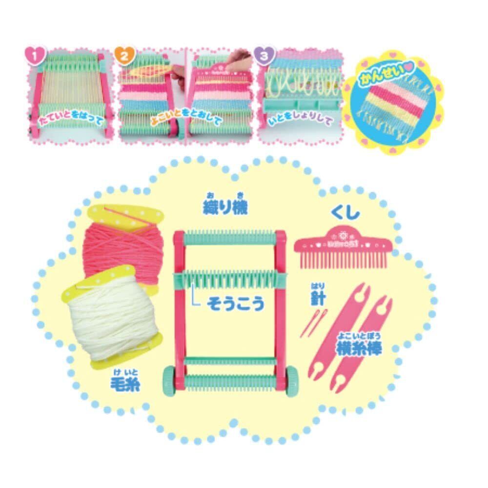 簡単に織物が作れる、小さなサイズの織り機です。付属の毛糸ですぐに織り始めることができます。
