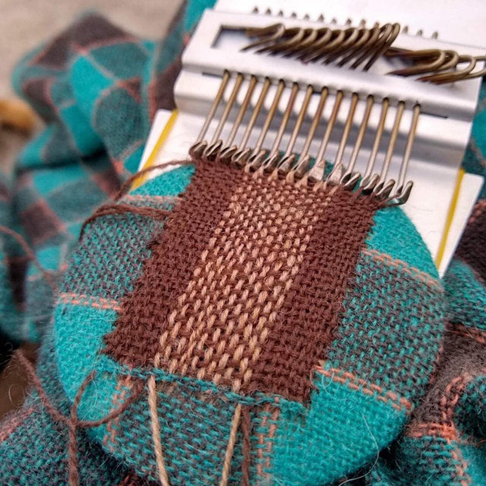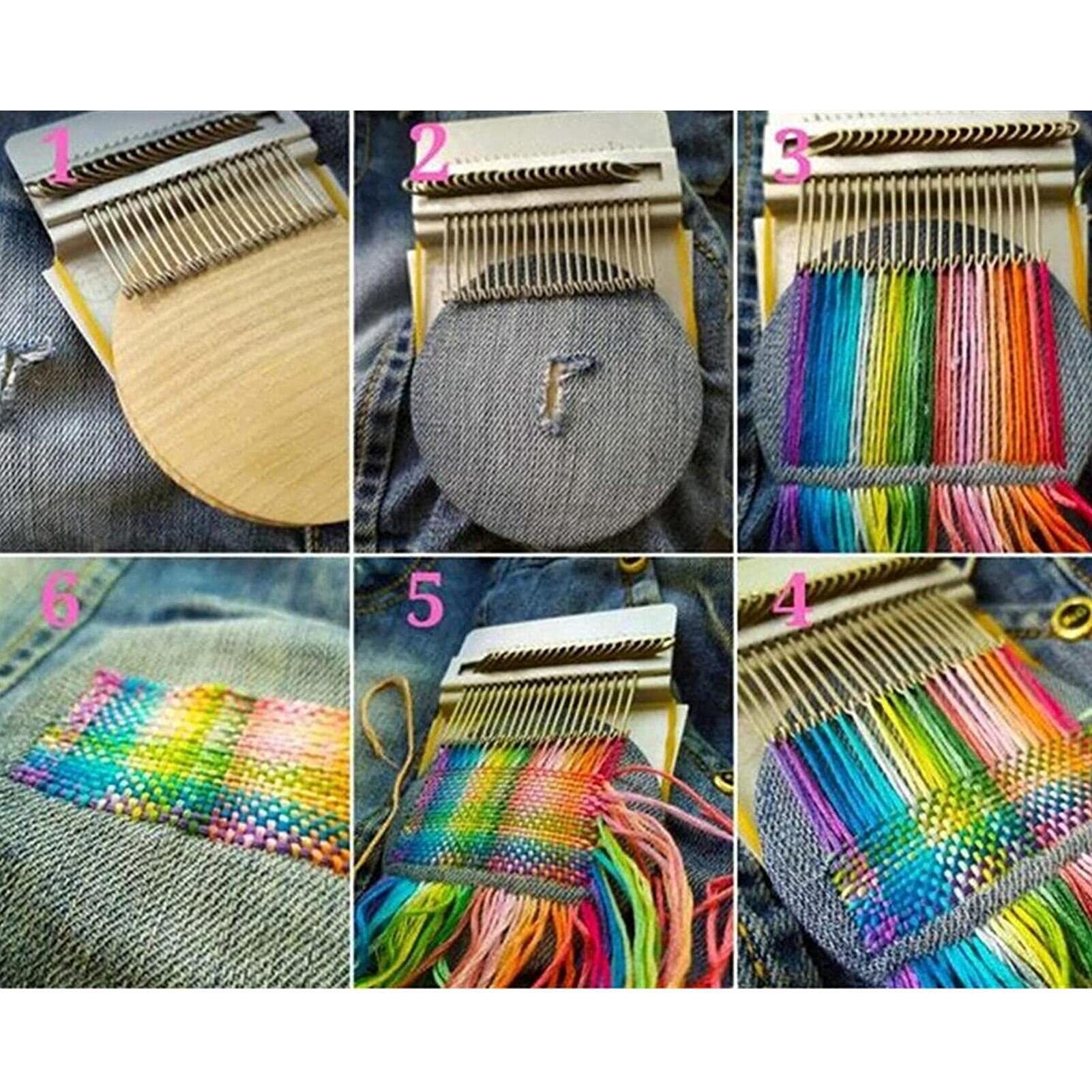 【耐久性のある素材】:このデバイスは、フック付きの金属と木製のプレートの2つの部分で構成されています。パーツは耐久性のある輪ゴムで相互に接続されています。生地をツールに伸ばし、輪ゴムを使用して生地と織機を所定の位置に固定し、縦糸をセットして織ります。