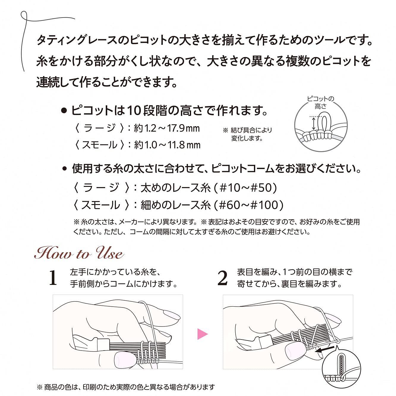 糸をかける部分がくし状なので、大きさの異なる複数のピコットを連続して作ることができます。