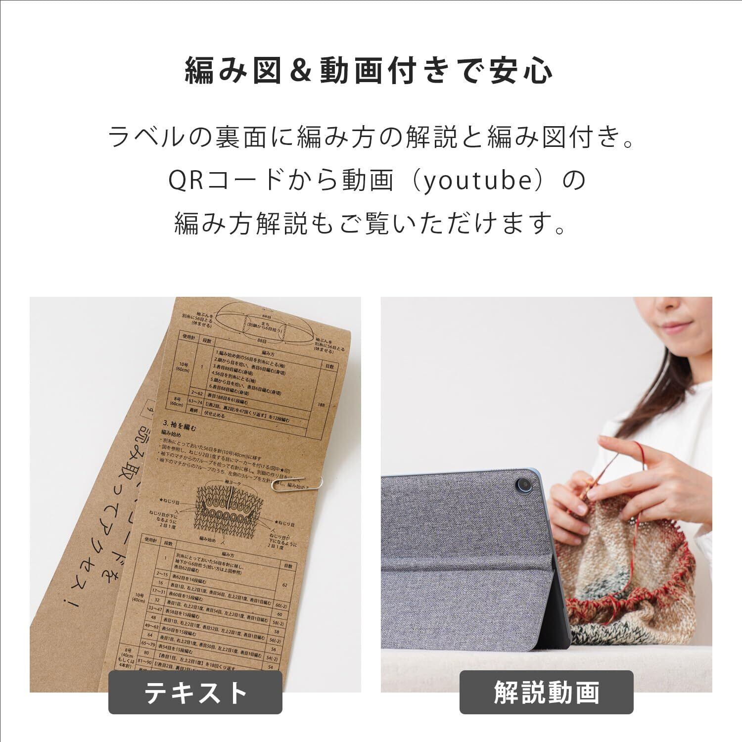 キット内容:みんなのセーターマルチ…1玉 │ レシピ…1枚(※基本的な編み方の解説は入っていません)編み方動画のQRコード付き