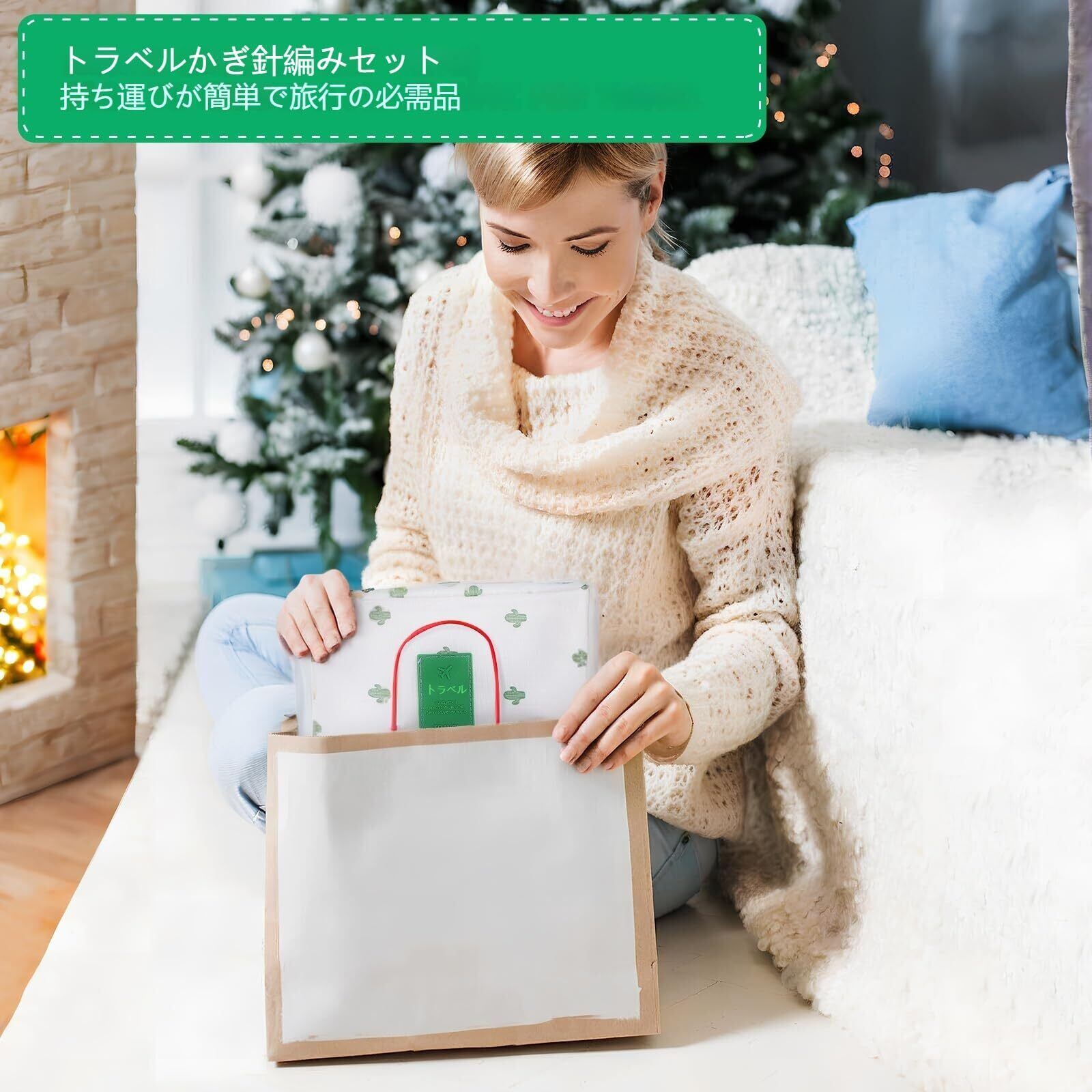 【可愛いサボテン柄・収納バッグ付き】 道具をスッキリ整理できる、おしゃれな白いサボテン柄の収納ケースが付属。内部にはゴムバンドやポケットがあり、かぎ針や小物がバラバラになりません。持ち手付きでポータブル(携帯)性に優れ、カフェや旅行先での手芸タイムにも活躍します。