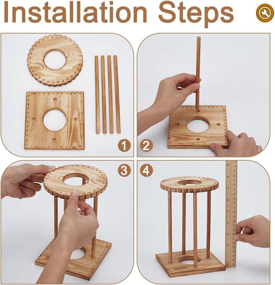 サイズ参考:完成品は約幅5インチ、長さ5インチ、高さ7.4インチです。上部の丸い木製ディスクは約5x0.3インチです。 ベースの長方形の木製ボードは約5x5x0.3インチです。 柱は約7.1×0.3インチです。 取り付けには写真の手順に従うだけです。