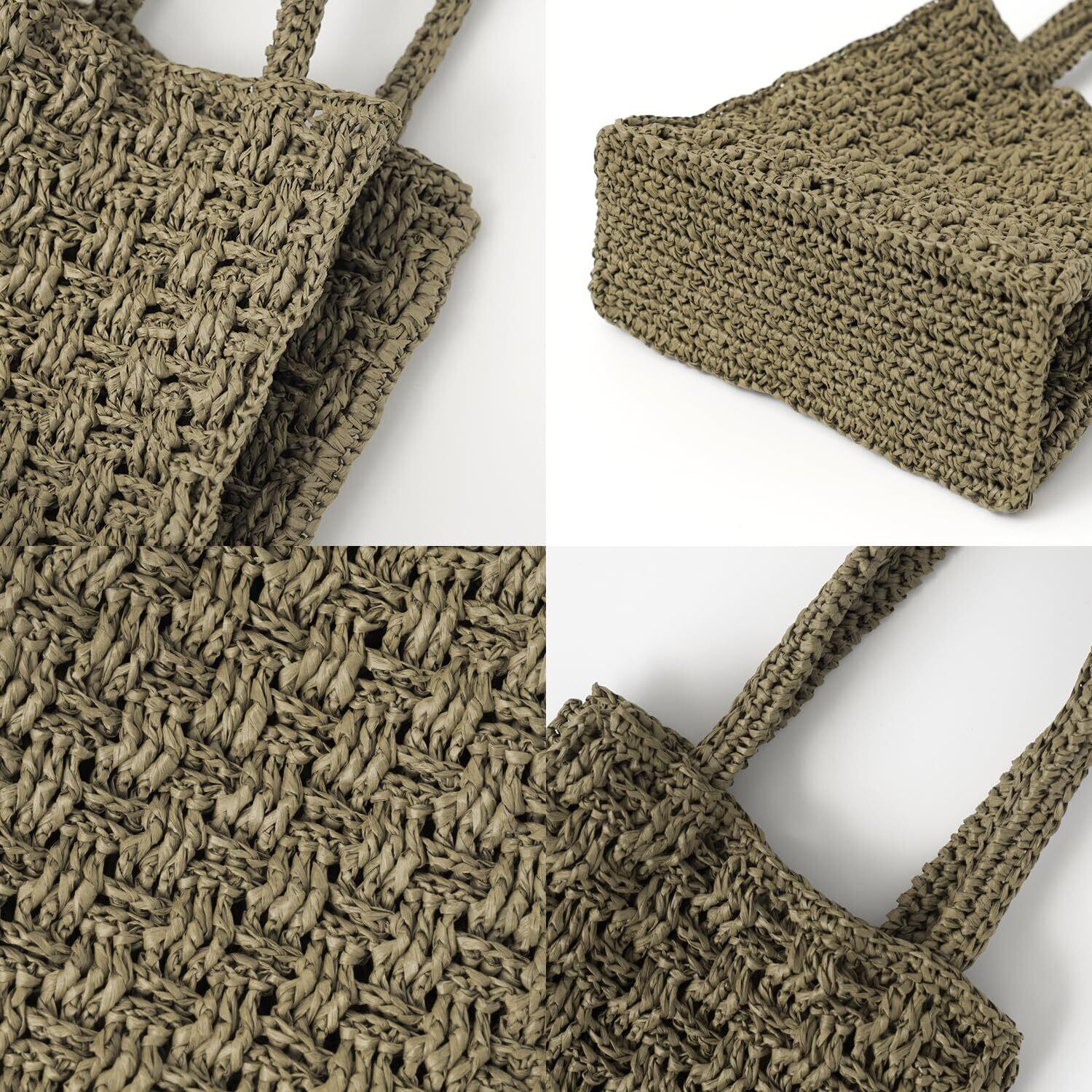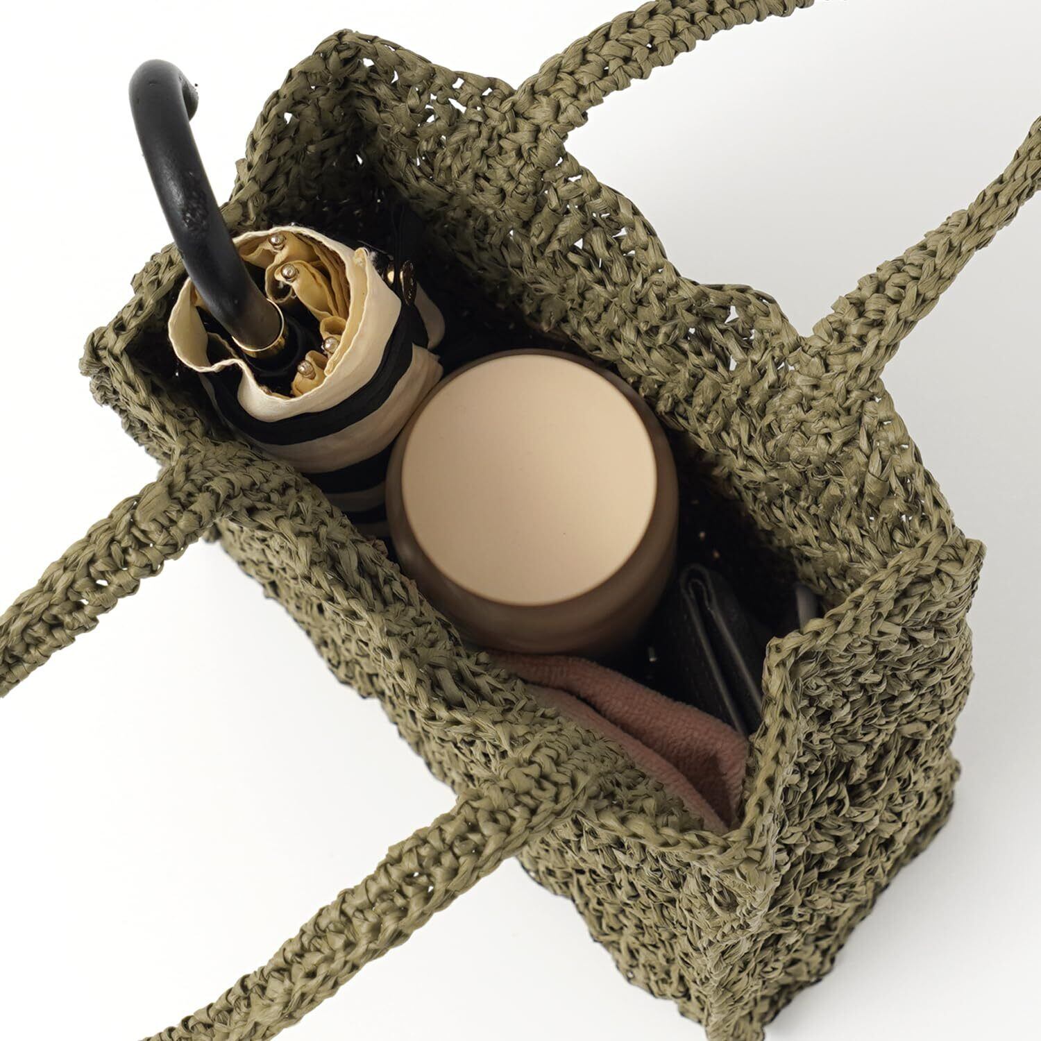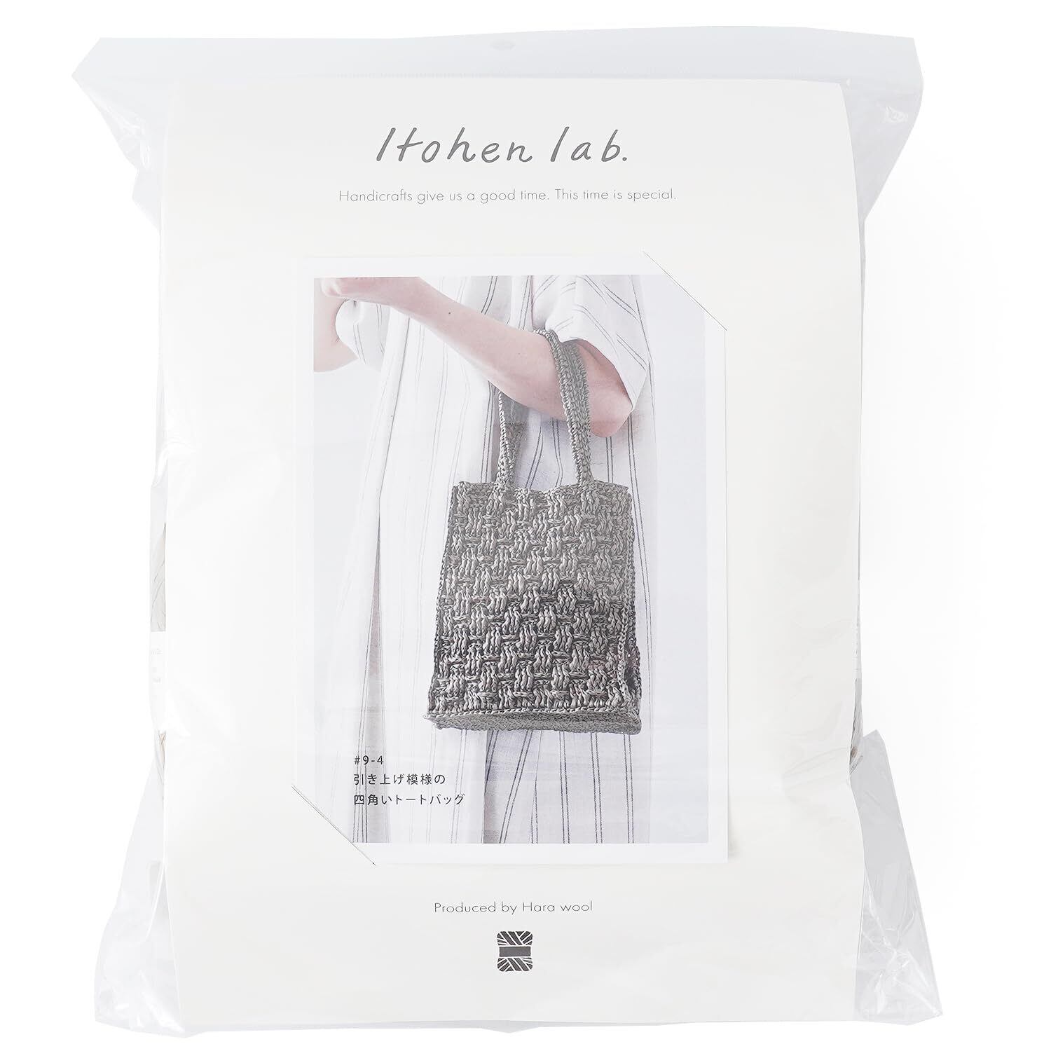 原ウール itohenlab 編み物キット #9-4 引き上げ模様の四角いトートバッグ (カーキ)