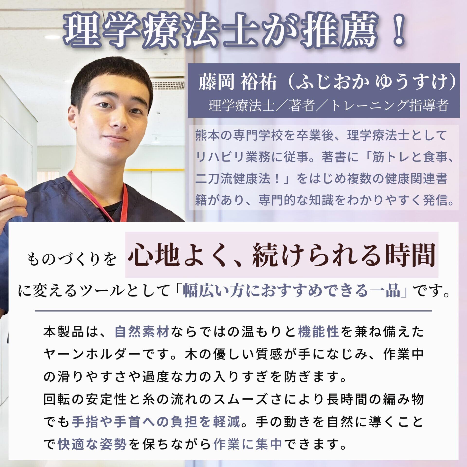 【理学療法士推薦/手首と姿勢にやさしいデザイン】専門家も推奨する自然な高さと角度設計により、手首や腕に負担をかけず快適に編み物を継続できます。スムーズな糸の流れが編み姿勢を崩さず、長時間の作業もラクに。