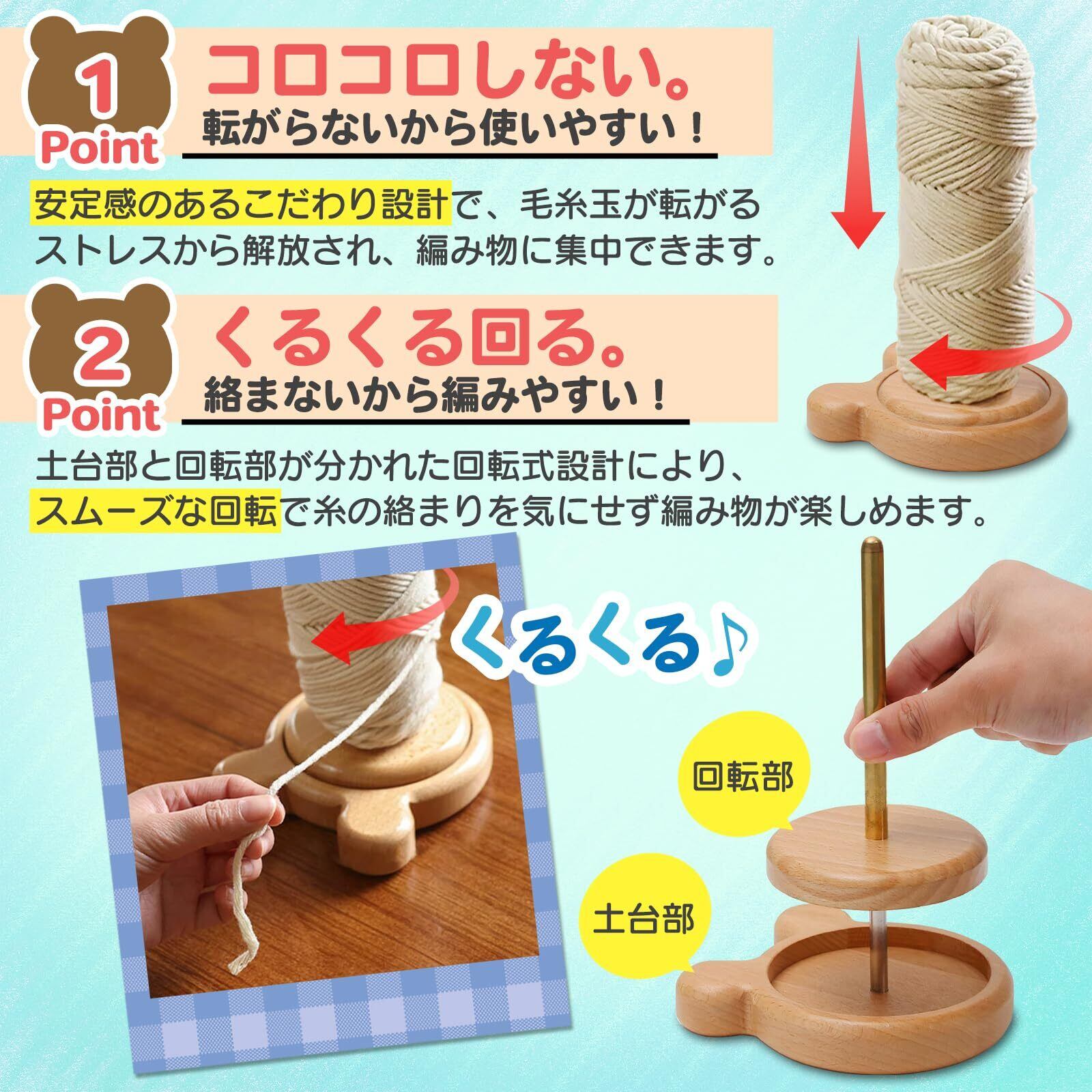 Morisho ヤーンホルダー 毛糸ホルダー 毛糸 スタンド 編み物 道具 木製 回転 糸巻き 巻き取り 収納