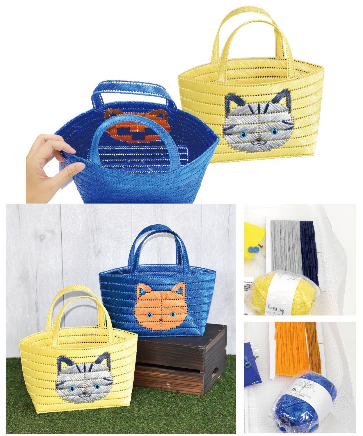 キャンバスに刺してバッグ、ペン立て、ティッシュBOXなど様々な作品が作れます。