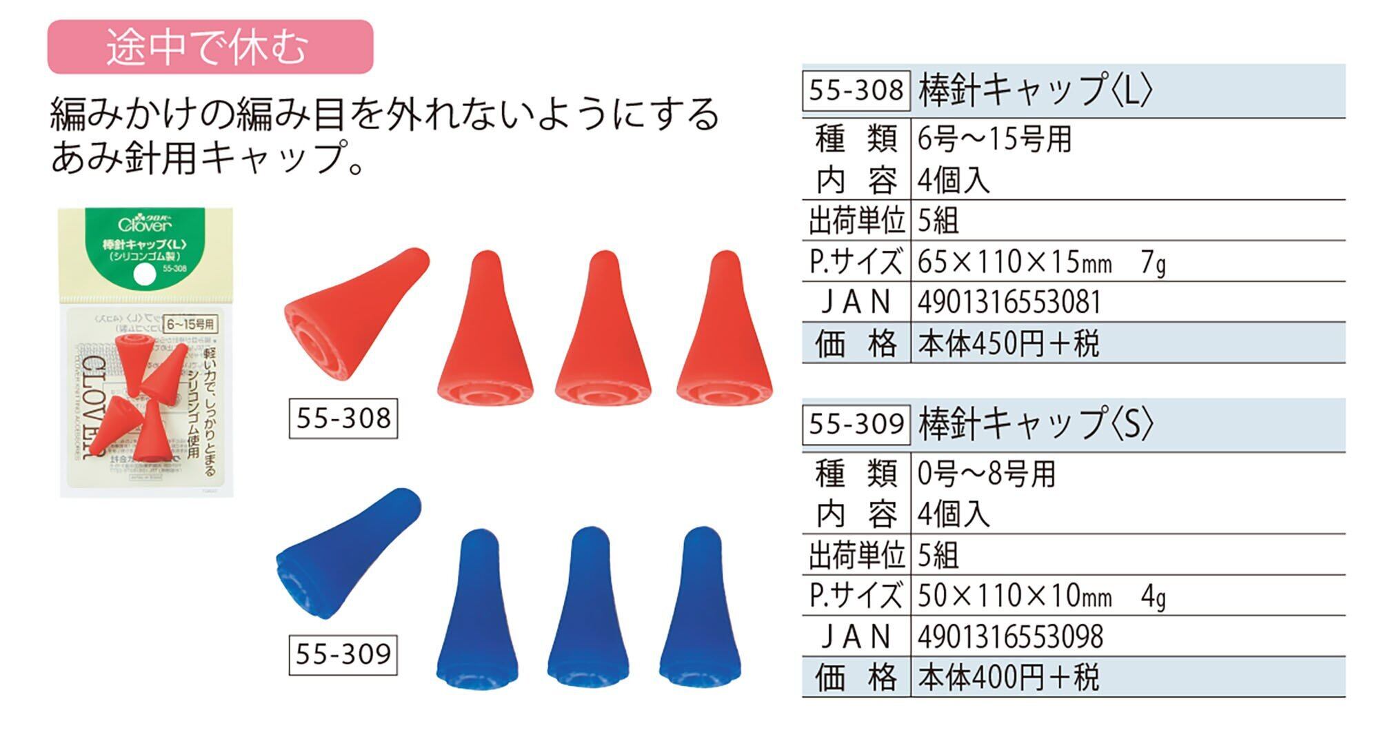 編みかけの編み目が外れないようにする編み針用キャップ。