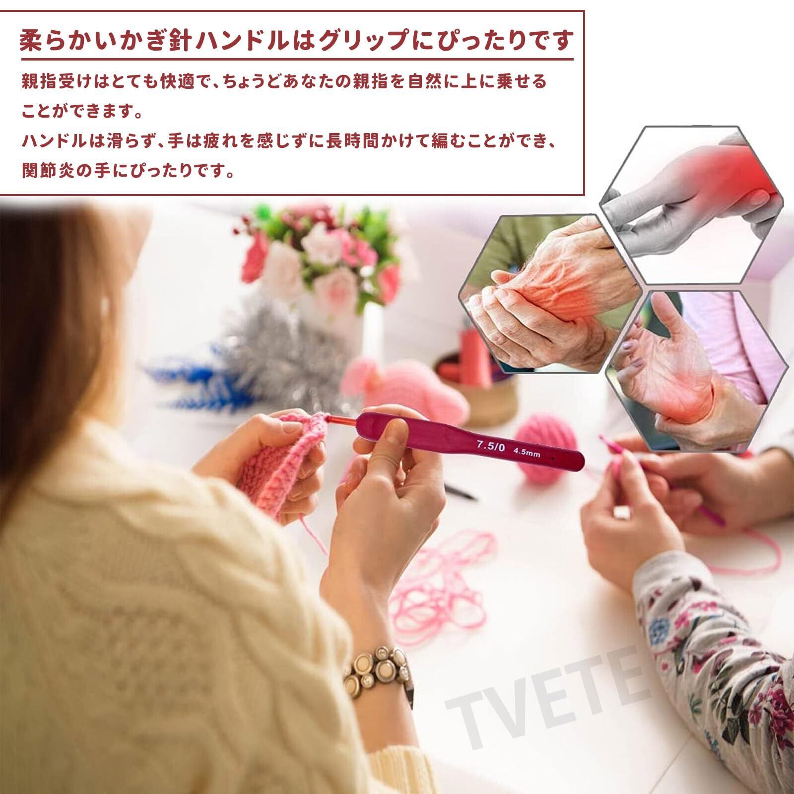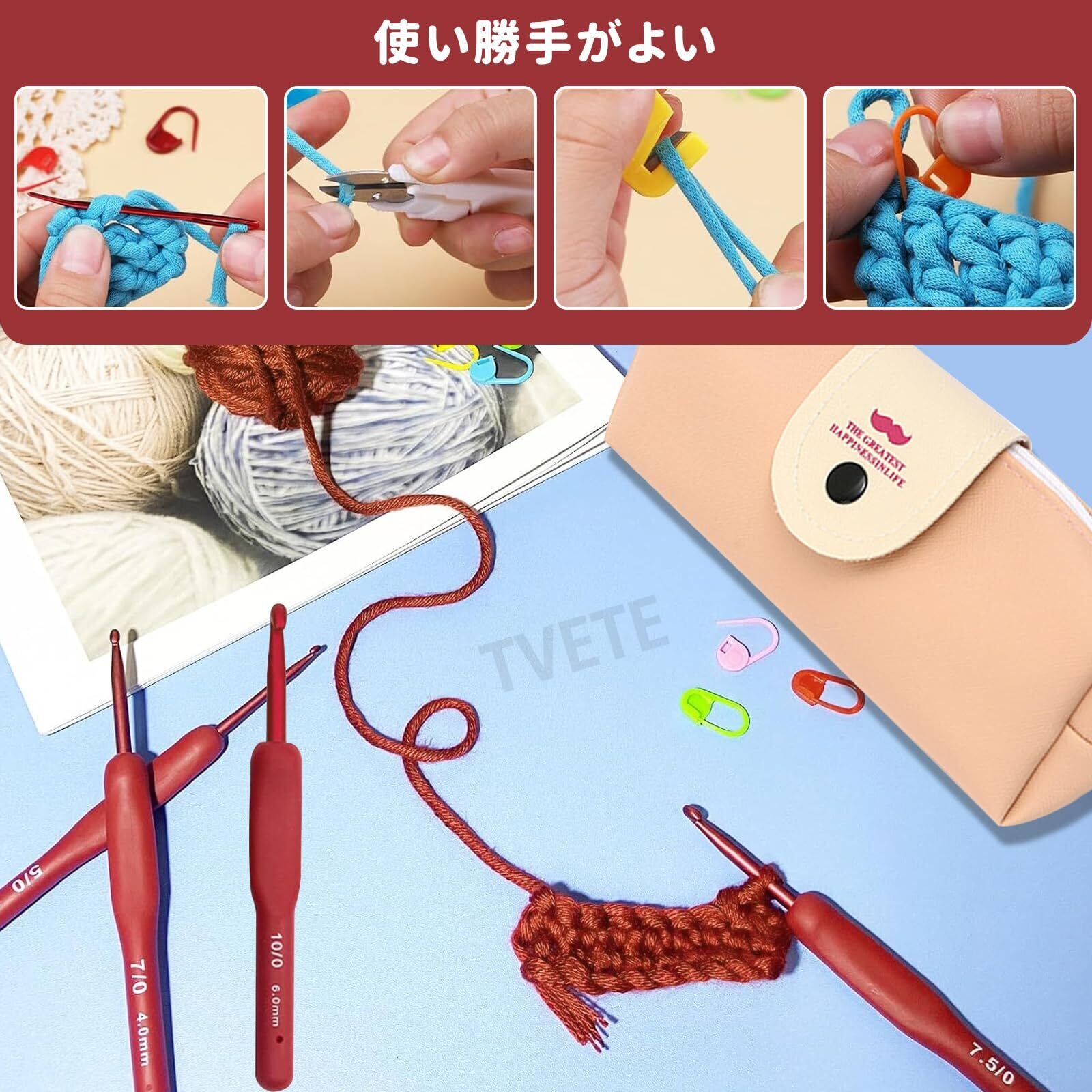TVETE かぎ編み セット 編み物 かぎ針 かぎ針セット アルミニウム プラスチック マーキングバックル マーキングサークル 糸カッター 段数マーカー 収納でき DIY 初心者 キット 編み物 手工芸 手作り セット 赤