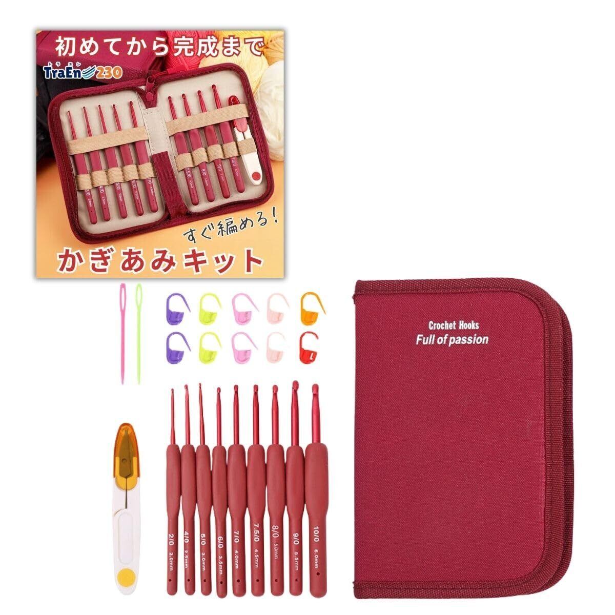 【特価セール】TraEn230 かぎあみ キット 初心者 かぎ針セット かぎ編み 編み物 かぎ針 かぎ針編み 編み針 6号 (レッド)