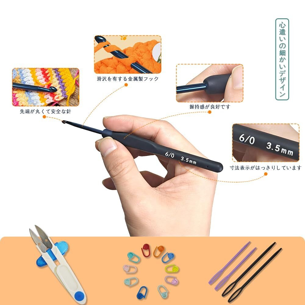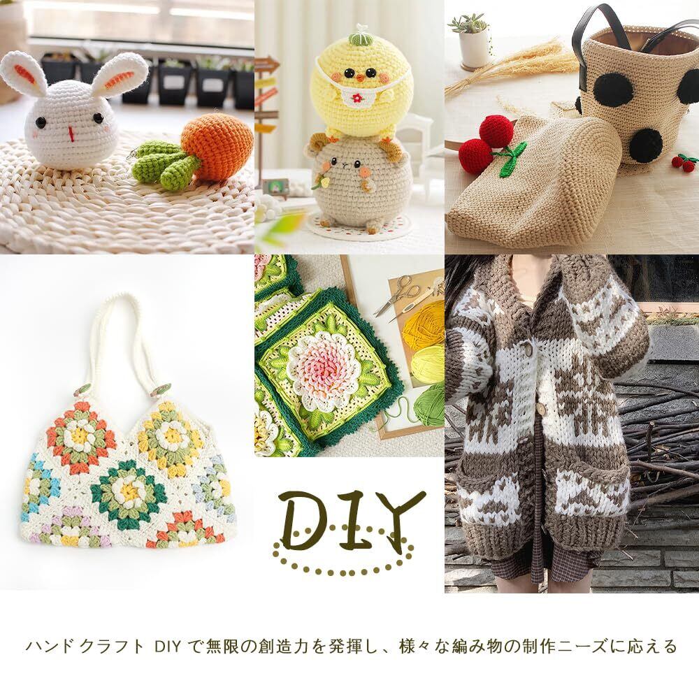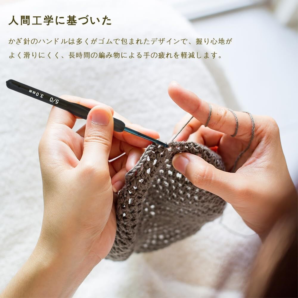 【心遣いの細かいデザイン】かぎ針のハンドルは多くがゴムで包まれたデザインで、握り心地がよく滑りにくく、長時間の編み物による手の疲れを軽減します。初心者と経験豊富な編み物愛好家の双方に応え、操作のハードルが低く専門性も充足しており、適用範囲が広いです。