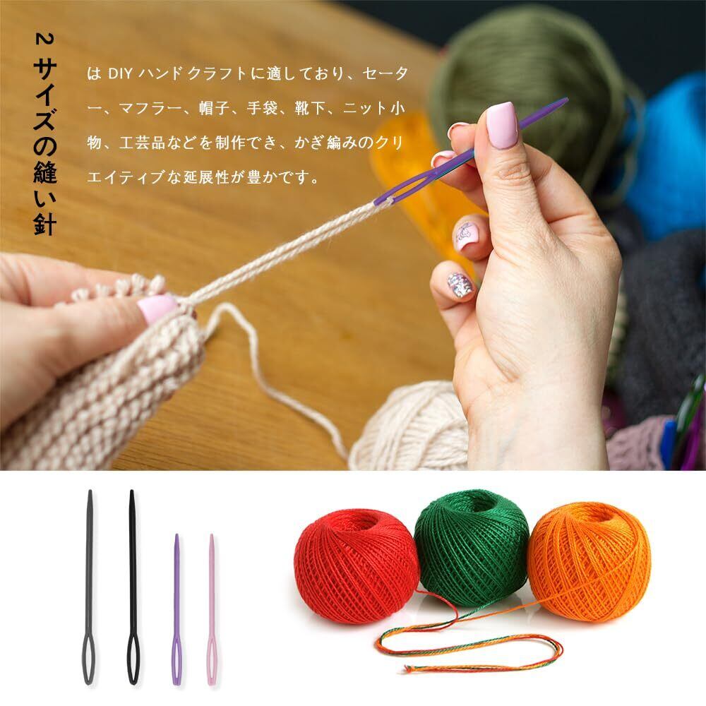 【広く適用可能】2 サイズの縫い針は DIY ハンドクラフトに適しており、セーター、マフラー、帽子、手袋、靴下、ニット小物、工芸品などを制作でき、かぎ編みのクリエイティブな延展性が豊かです。