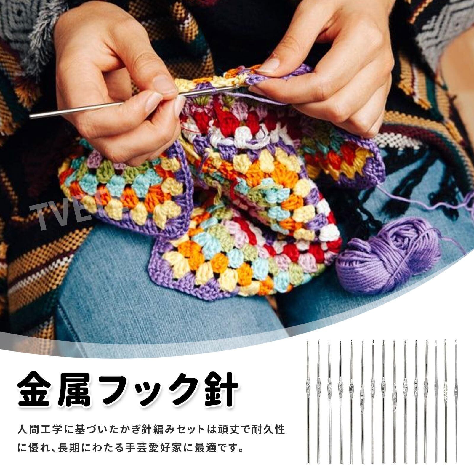 【あらゆるサイズに対応する15種類のかぎ針】:0.6mmから2.5mmまで、15種類のかぎ針がセットになっており、細編みから中太糸を使った編み物まで、あらゆるニーズに対応します。レース編み、かぎ針人形、スカーフ、コースター、ホームデコレーションなど、どんな作品にもぴったりのツールが見つかります。
