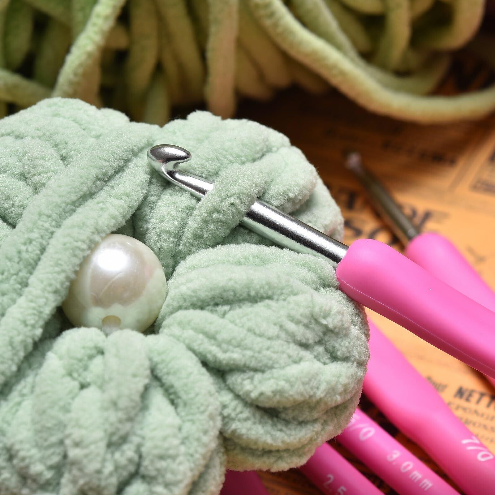【高品質のかぎ針】くるくる一方向に編むだけで、簡単に作品が作れるかぎ針です。耐久性のあるシリコーンのは長時間の使用に耐えられ、針の糸の接続がスムーズです。使いやすく、編みやすいステンレス鋼