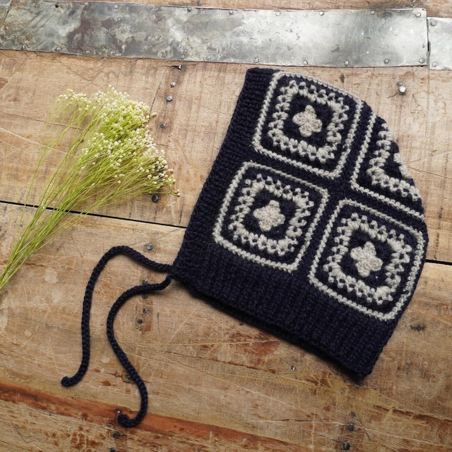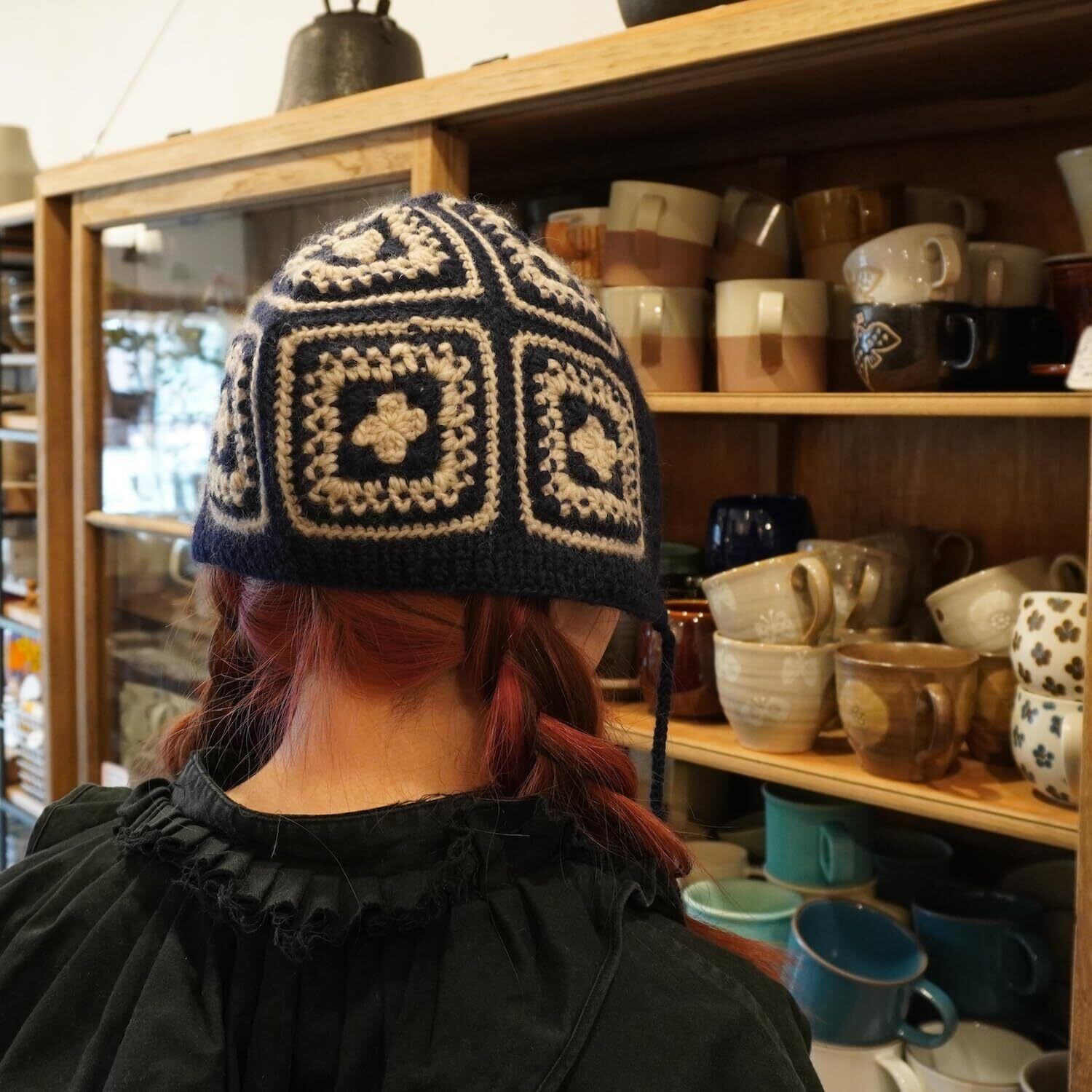 DARUMAのクロッシェモチーフフーディーキャップ。