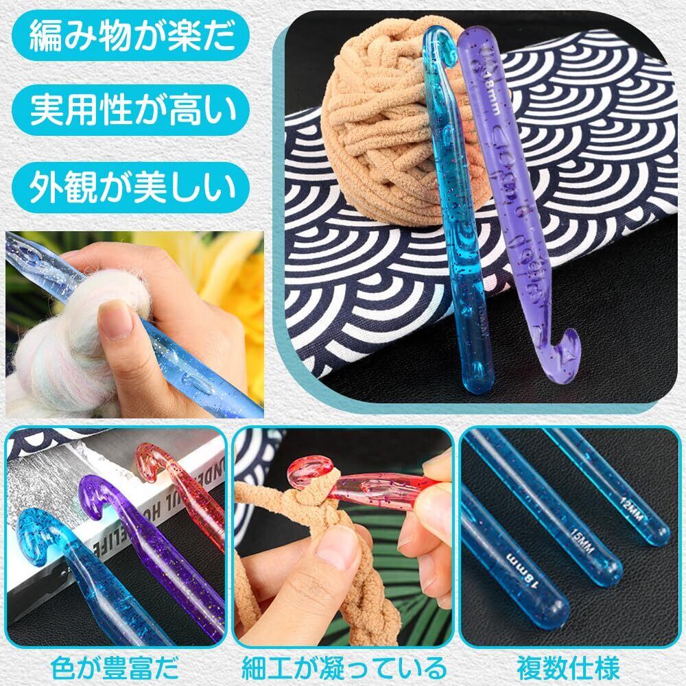 【人気商品】かぎ針セット 毛織り針セット かぎ針編みフックセット 編み物用 手編み ニット用 初心者向けのかぎ針編みキット 毛糸服 帽子など DIY用品 12mm 15mm 18mm 3色
