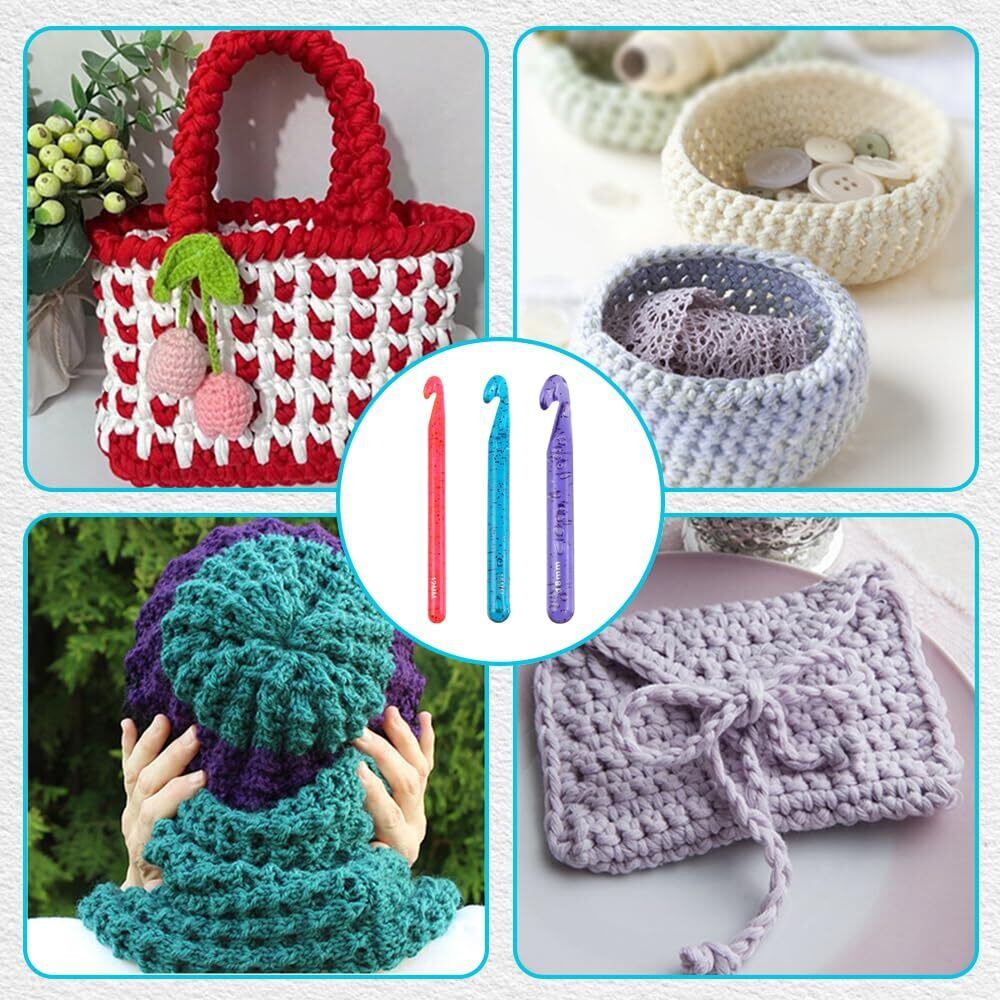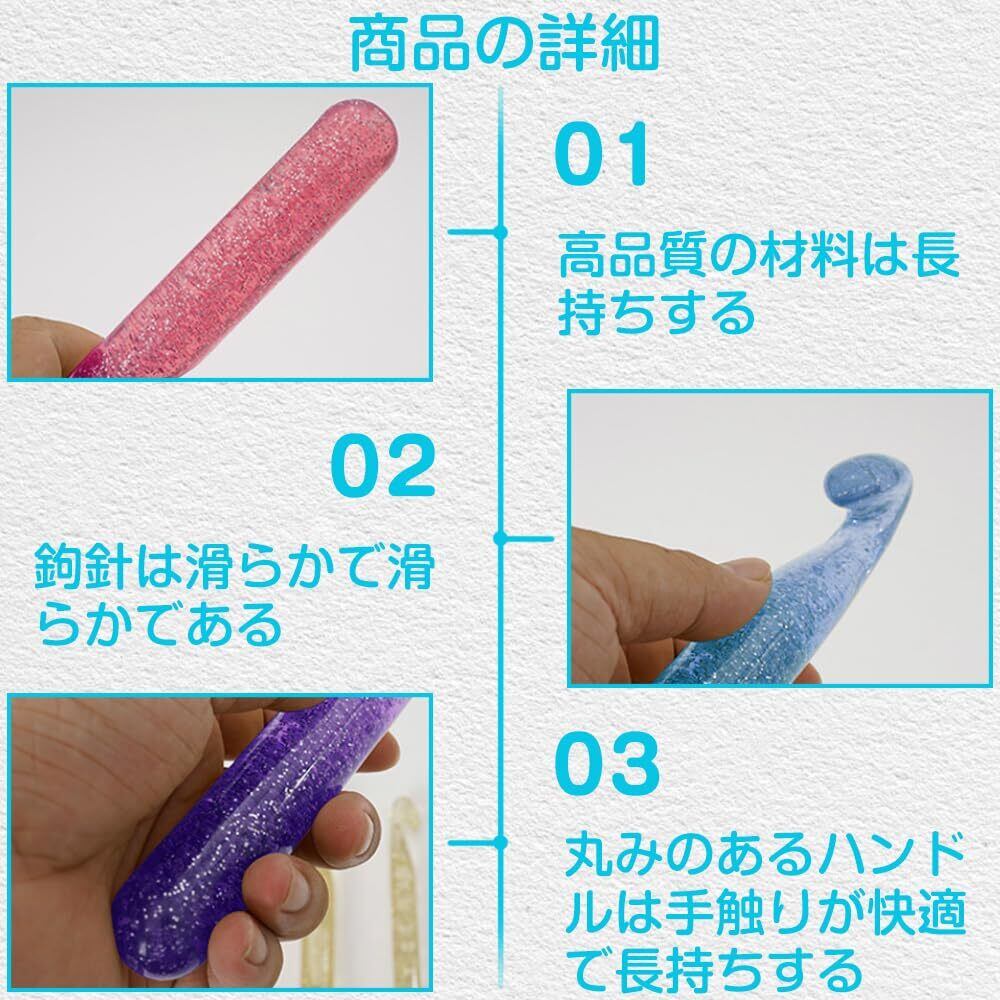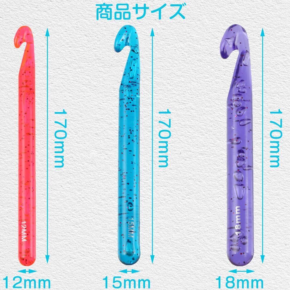 1.セット内容:かぎ針3本入、赤色寸法:170 mm*12 mm、青色寸法:170 mm*15 mm、紫色寸法:170 mm*18 mm。