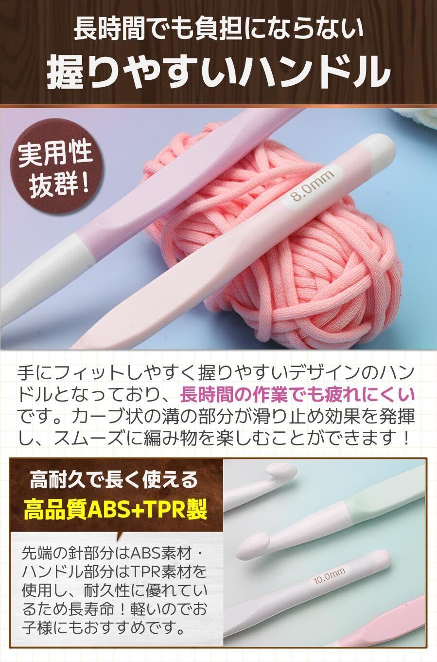 【滑らかなABS製先端】 丸みのあるABS素材のフック先端が、糸の引っ掛かりを防ぎ、初心者でもスムーズに編み進めることができます。編み物中のストレスを大幅に軽減し、気持ちよく手芸を楽しむことが可能です。