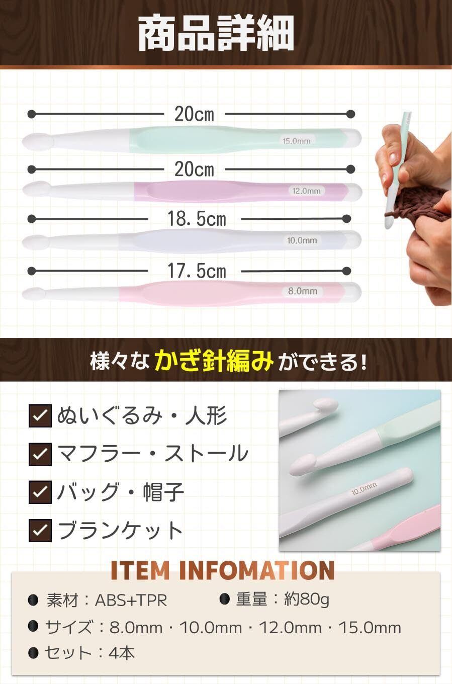 fogman かぎ針 ジャンボ 大きい 使いやすい かぎ編み 編み物 帽子 スカーフ 4本セット
