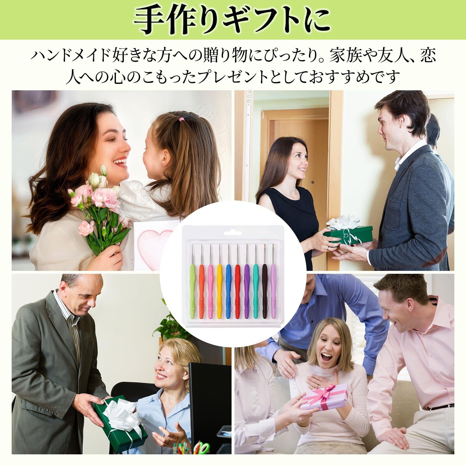 【2022最新】かぎ針 編み物 かぎ針 レース 10本セット 手編み用レース針 ソフトグリップ付き 毛糸編み針 ハンドメイド手芸用