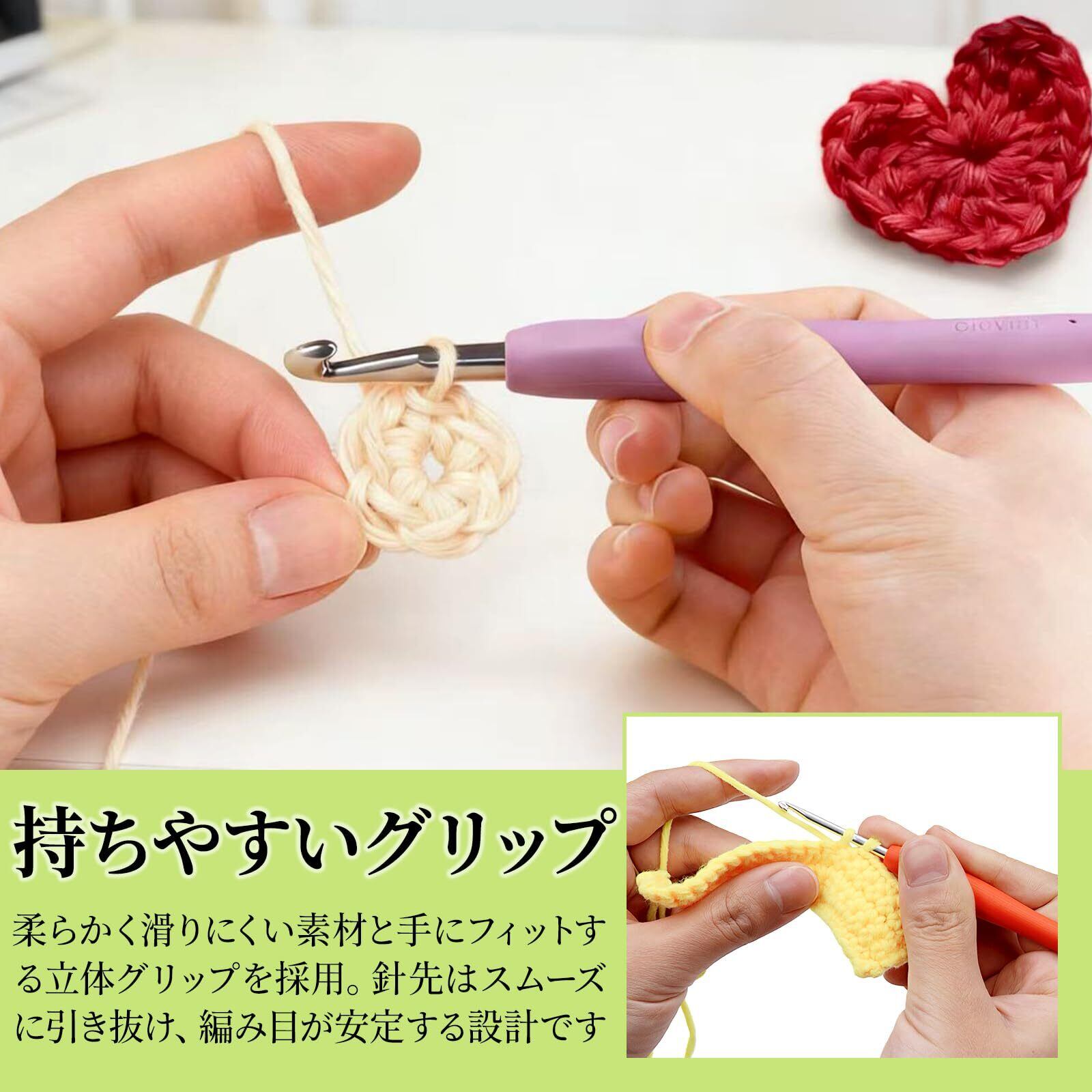 【持ちやすいグリップ】柔らかく滑りにくい素材と手にフィットする立体グリップを採用。針先はスムーズに引き抜け、編み目が安定する設計です。