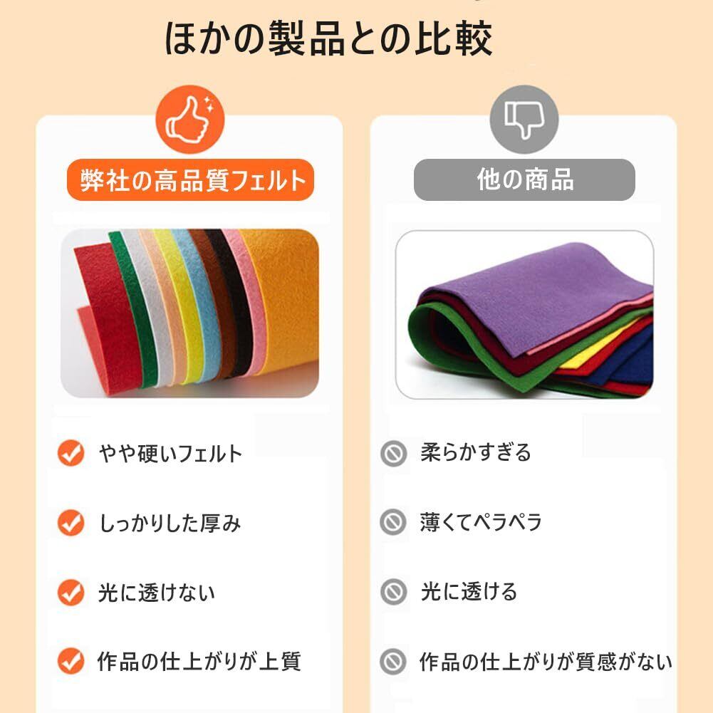 上質の素材:こちらの羊毛フェルト生地は高品質の羊毛繊維で作られ、厚みが約1 mmでしっかりしており、光に透けなく、簡単に形を作ることができ、作品の仕上がりが上質です。色落ち、縮み、ほつれ等がしにくい。 毛玉も出来にくく、耐久性に優れています。マスコット作りや幼稚園の飾り付けなど、さまざまなDIYプロジェクトにぴったりです。DIYの爱好者はもちろん、ハンドメイド初心者や子供にも大変おすすめです