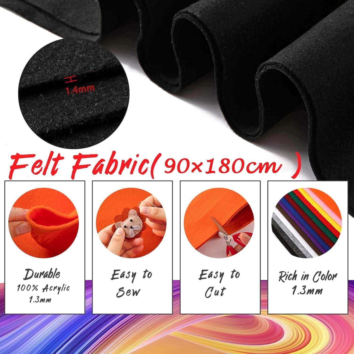 柔らかいフェルト 1.3mm厚 フェルト 大きいサイズ 約90×180cm 防塵カバー 手芸用品 DIY ハンドメイド素材 (ブラック)