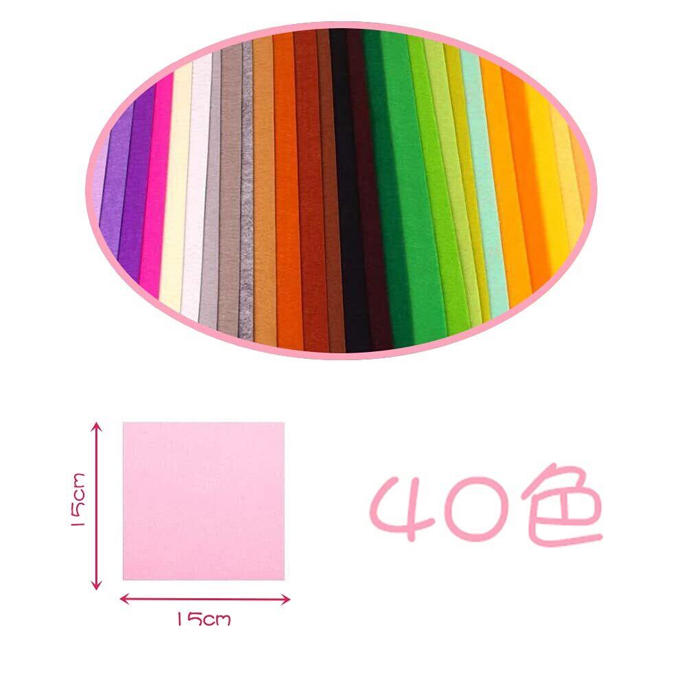 YFFSFDC フェルト カラフル40枚 羊毛フェルト 不織布 生地シート DIY手芸用 材料 幼稚園の装飾 手作り 15cm*15cm 厚さ1mm