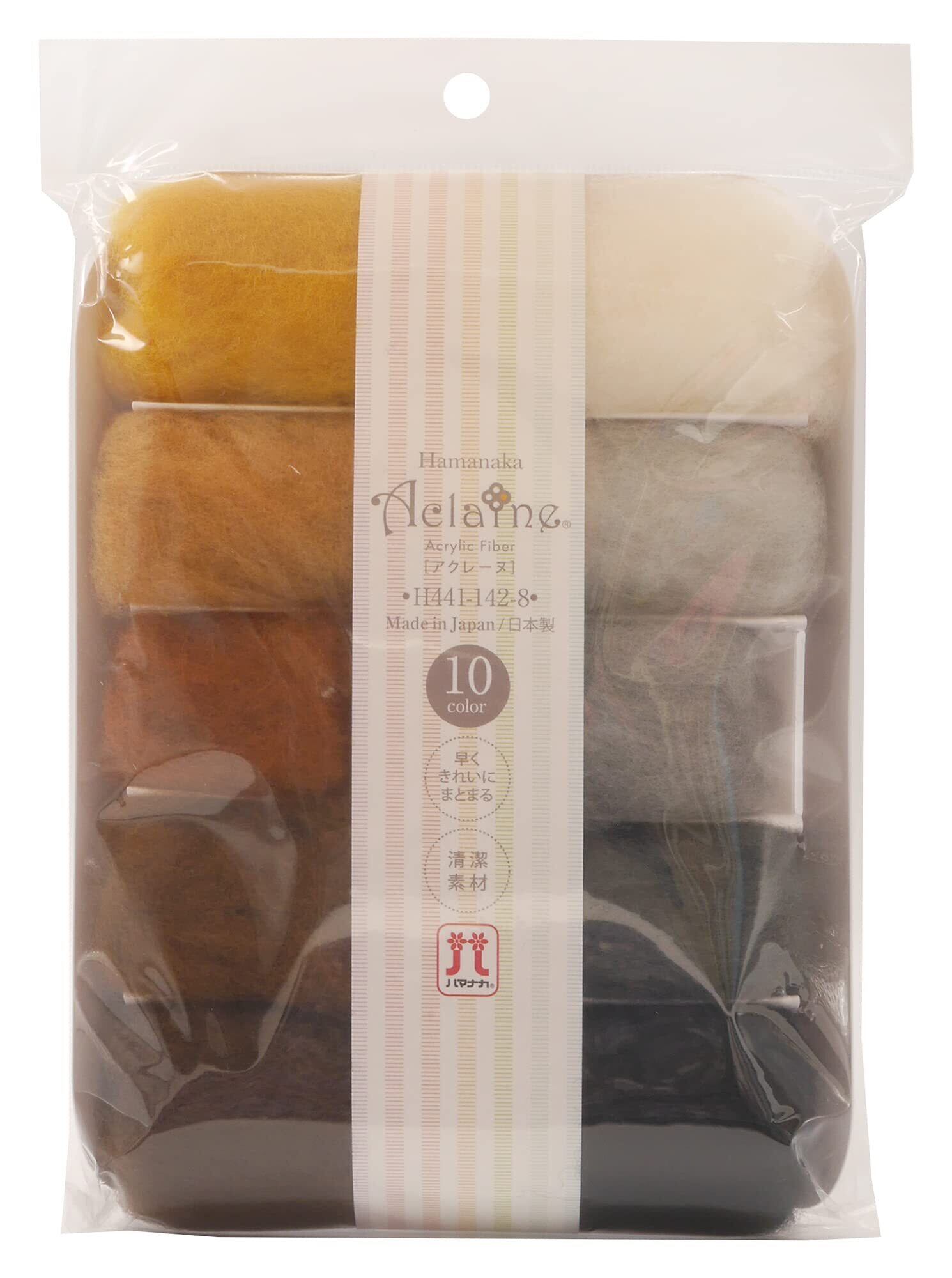 ハマナカ 羊毛フェルト アクレーヌ 10色セット 各色約2g入り 茶系・白黒系 H441-142-8