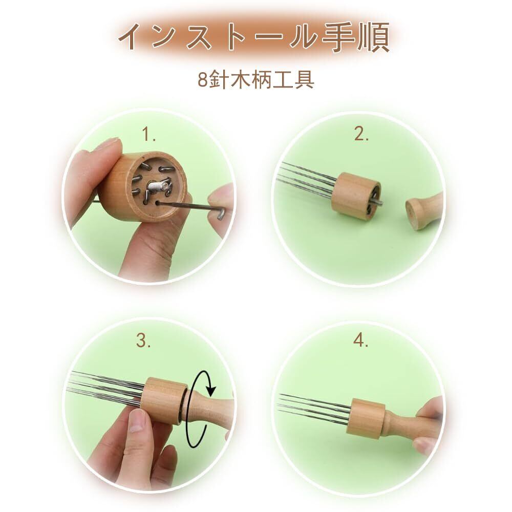 高耐久素材&快適設計 金属針+木製ハンドル:優れた耐摩耗性で繰り返し使用可能。 人間工学デザイン:滑りにくい木製グリップで長時間作業も疲れにくい。 8本同時刺し可能:広い面積のフェルト化を効率化(※木製ハンドル付属)。