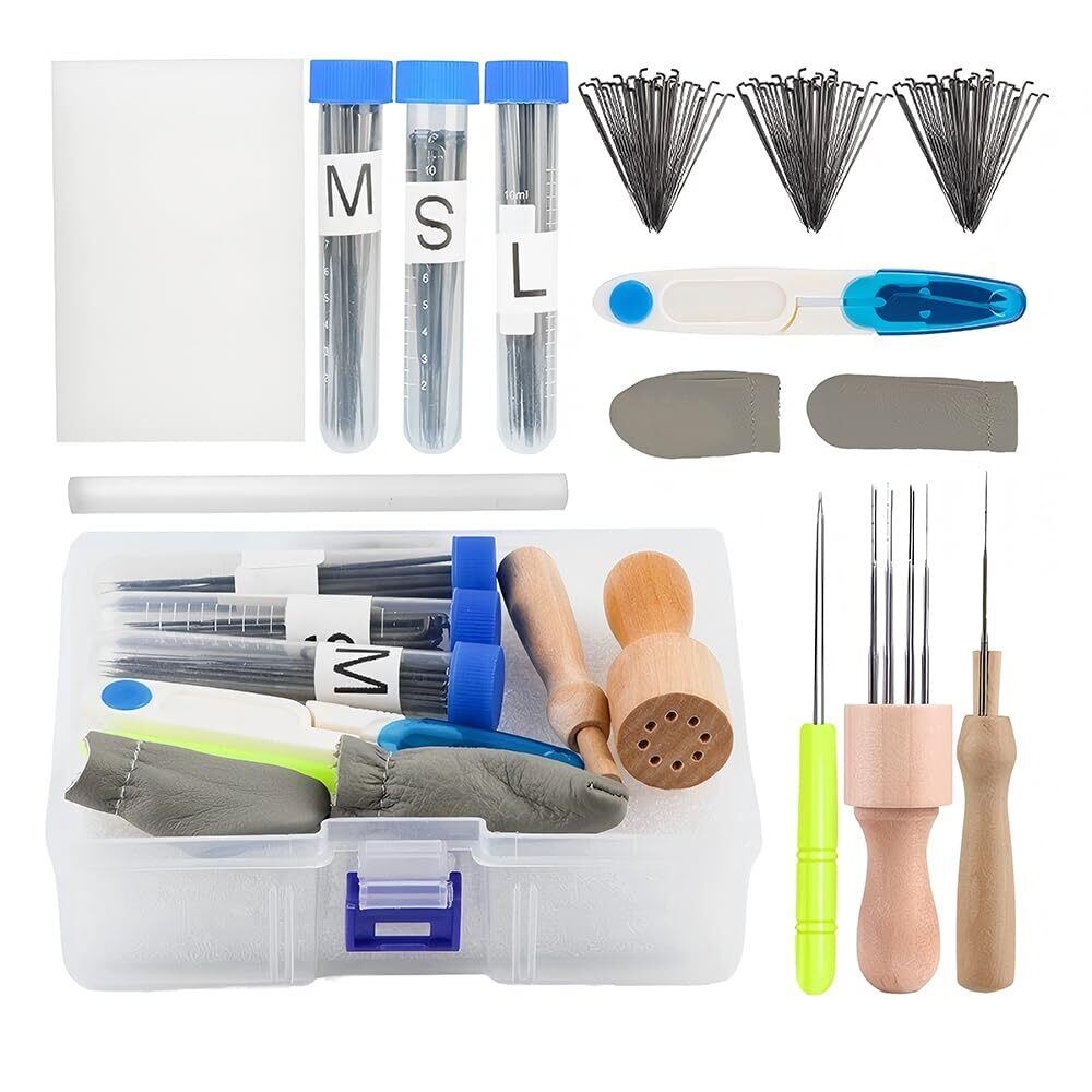 ️ 透明ボトル&収納ケースで整理ラクラク 針は3サイズ別の透明ボトルに分類収納。工具全体はコンパクトケースにまとまり、旅行・自宅・教室での持ち運びに最適。