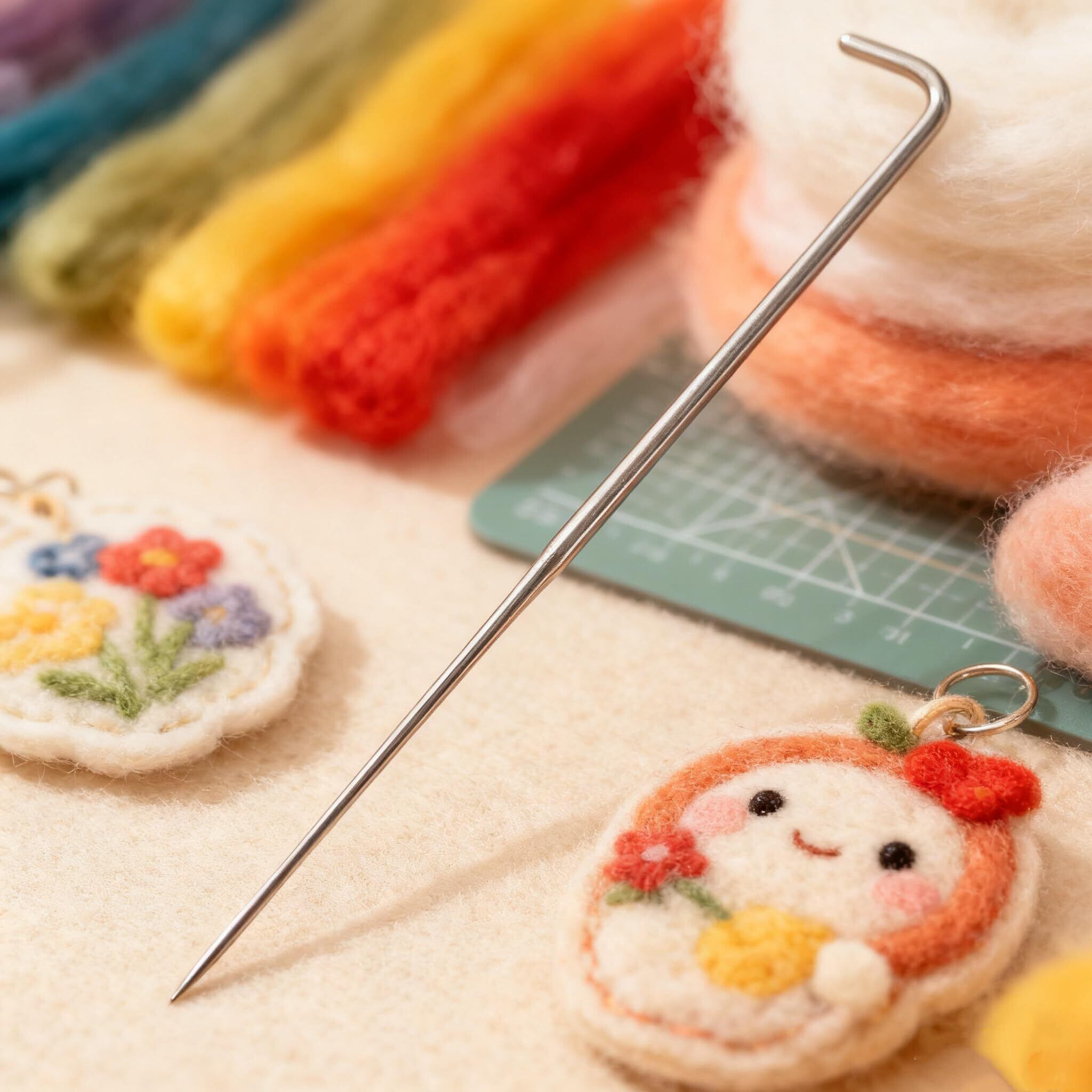 【ハンドクラフト専用】主に羊毛フェルティング作品の制作に使用でき、フェルト人形、キーホルダー、バッグの装飾、ヘアアクセサリーなど、様々な羊毛ハンドクラフトの創作に役立ちます。手作り爱好家やクラフト教室でのツールとしても実用的です。