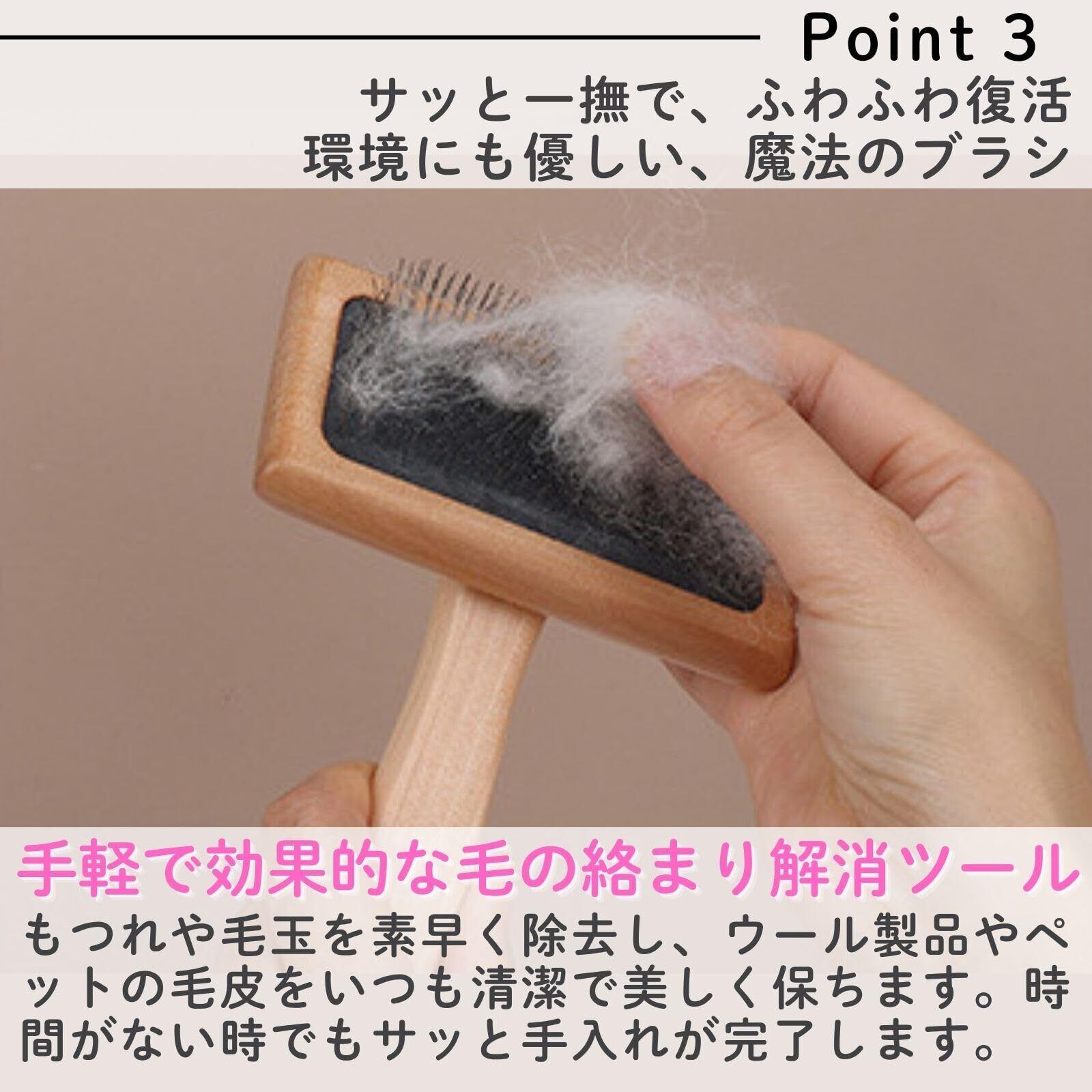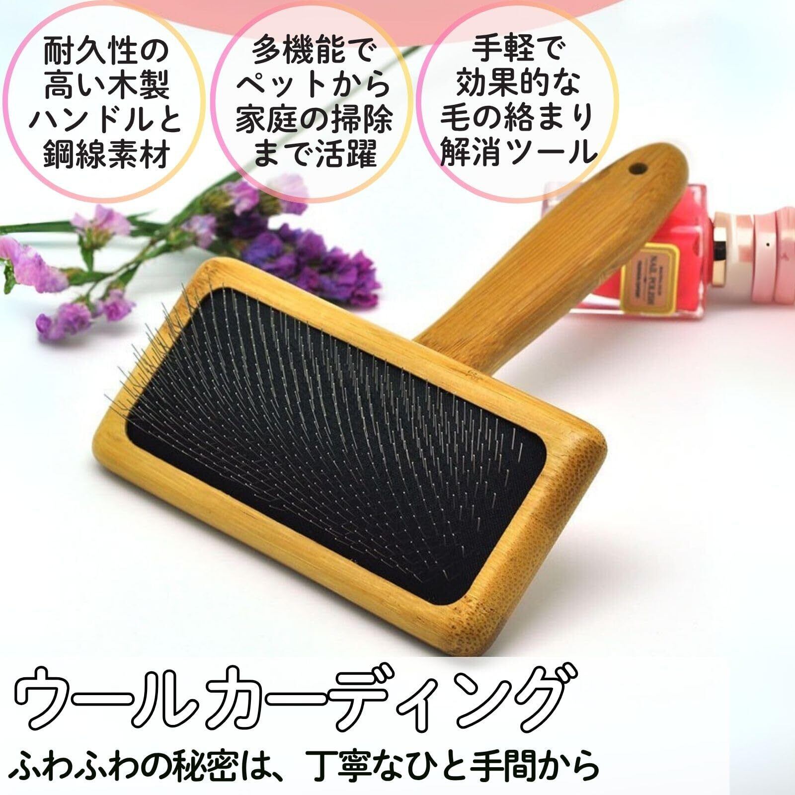 【伝統的で耐久性の高い木製ハンドルと鋼線素材】高品質な木材を使用した滑らかなハンドルは手に馴染みやすく、長時間の使用も快適。耐久性のある鋼線はウールやペットの毛のもつれを効果的にほぐす。