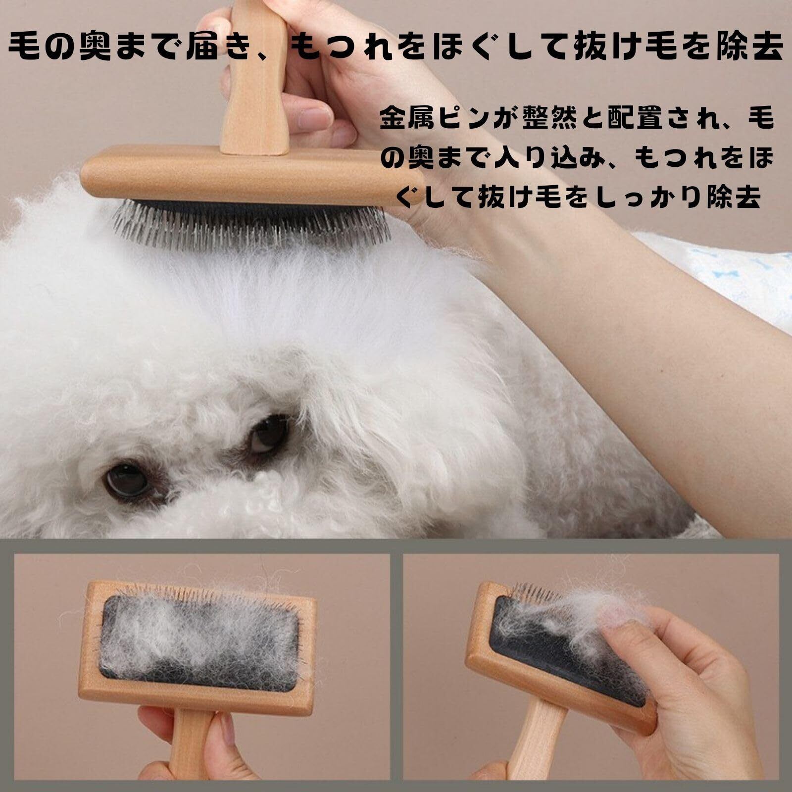 クッション構造でやさしい使い心地 クッション性のある設計により、素材やペットの肌を傷つけにくい仕様。もつれや絡まりをやさしくほぐしながら、毛並みを整えます。家具や衣類についた毛の除去にも効果的です。
