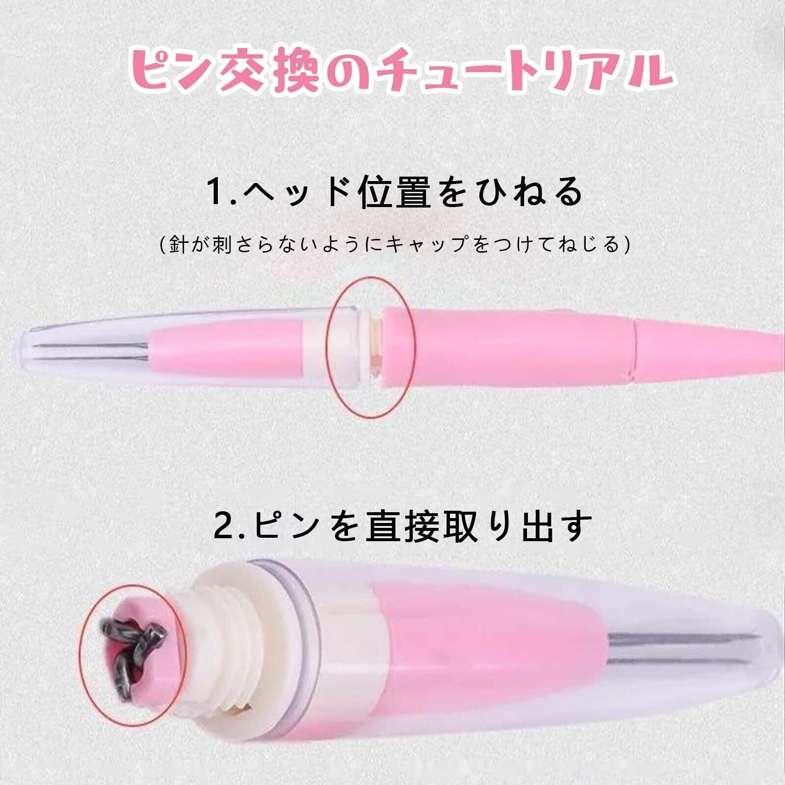 【使用方法】上部の90度まがったところをもち、垂直にまっすぐ刺してまっすぐに抜き、斜めに刺した場合は斜めに抜きます。まとめ用ニードルはマットに届くくらい深く刺し、仕上げ用ニードルは軽く浅く刺します。