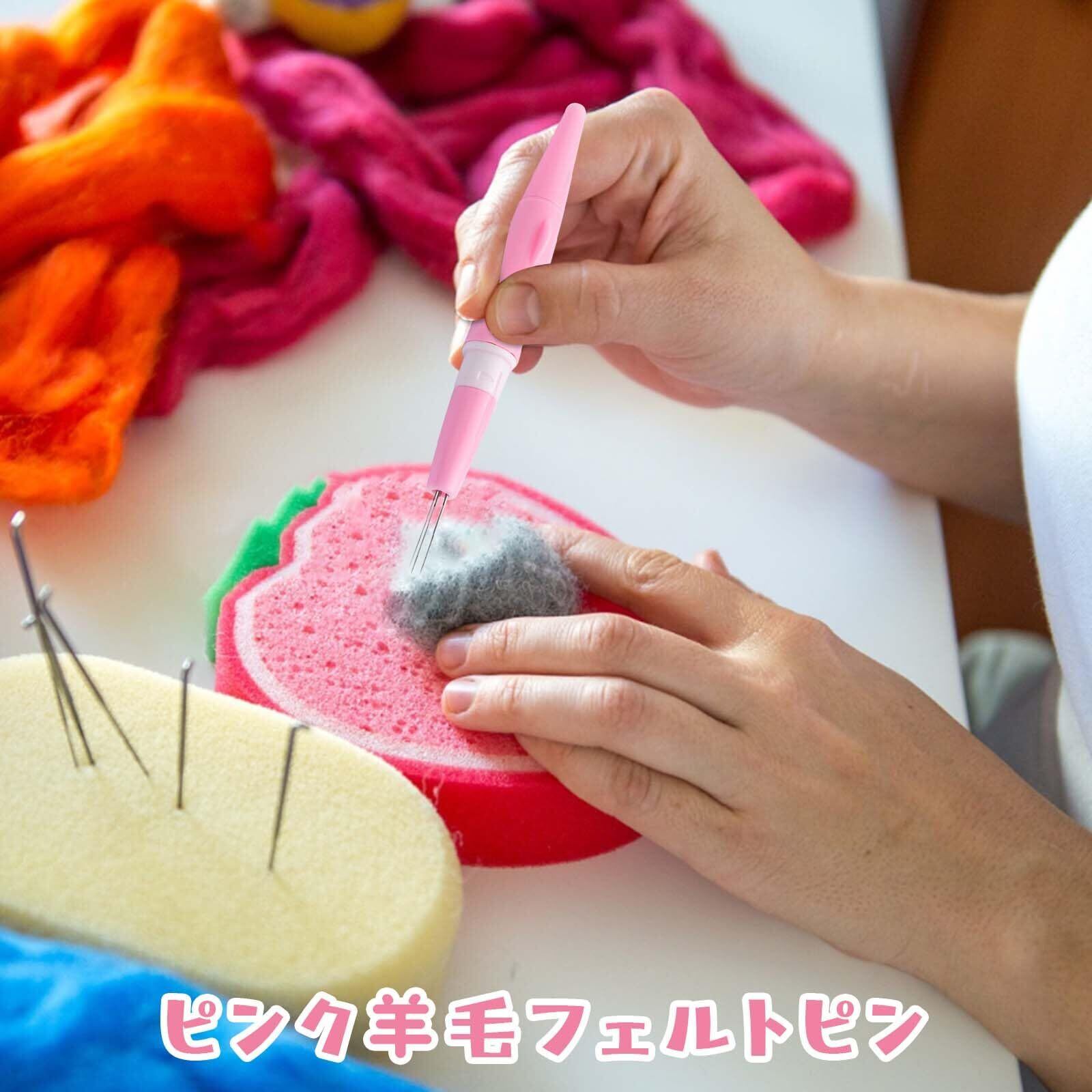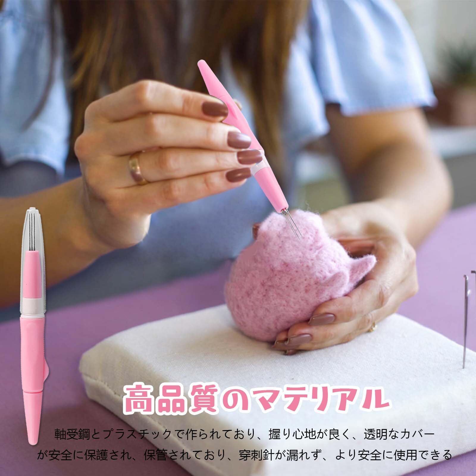 羊毛フェルト ニードル 3本 フェルト針 フェルト ニードル 針 ニードルフェルト 3本針 初心者入門キット 刺繍フェルトニードル 手作り 洋裁 羊毛フェルトdiy用ツール 快適なハンドル ピンク