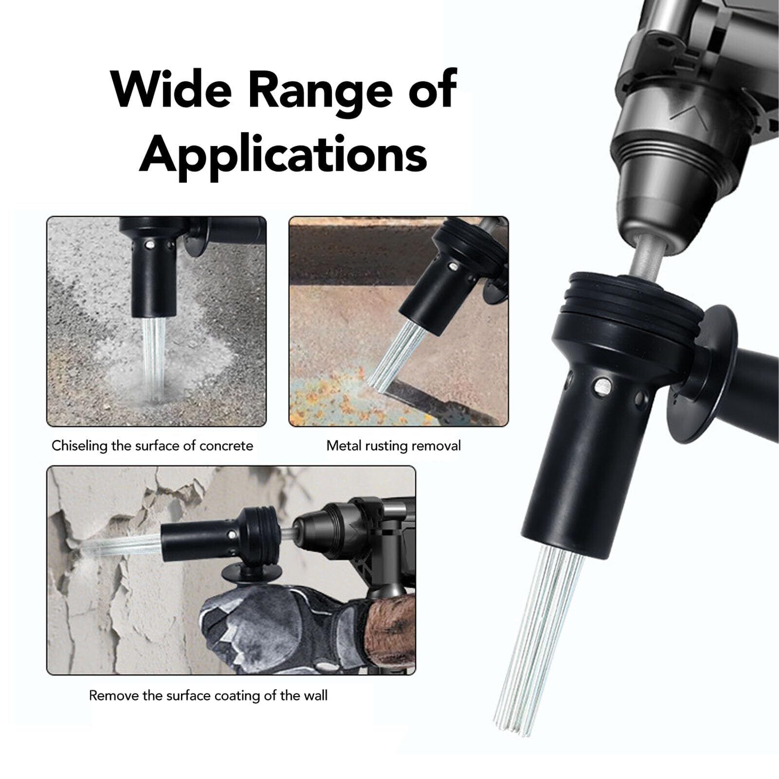 幅広いアプリケーション:この針スケーラーアタッチメントは、金属の錆びた除去、コンクリートまたはセメントの表面の彫り、浮遊スラリーの除去に使用できます。
