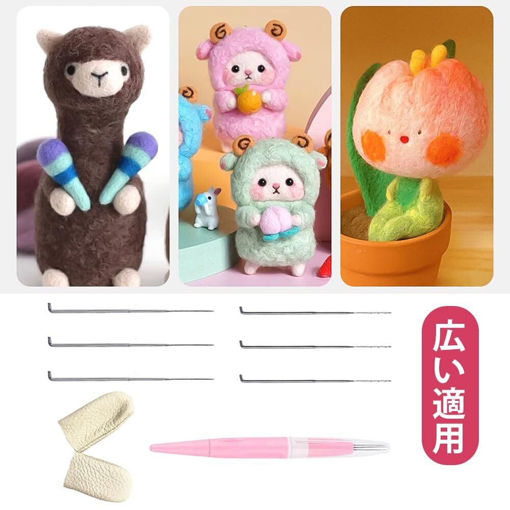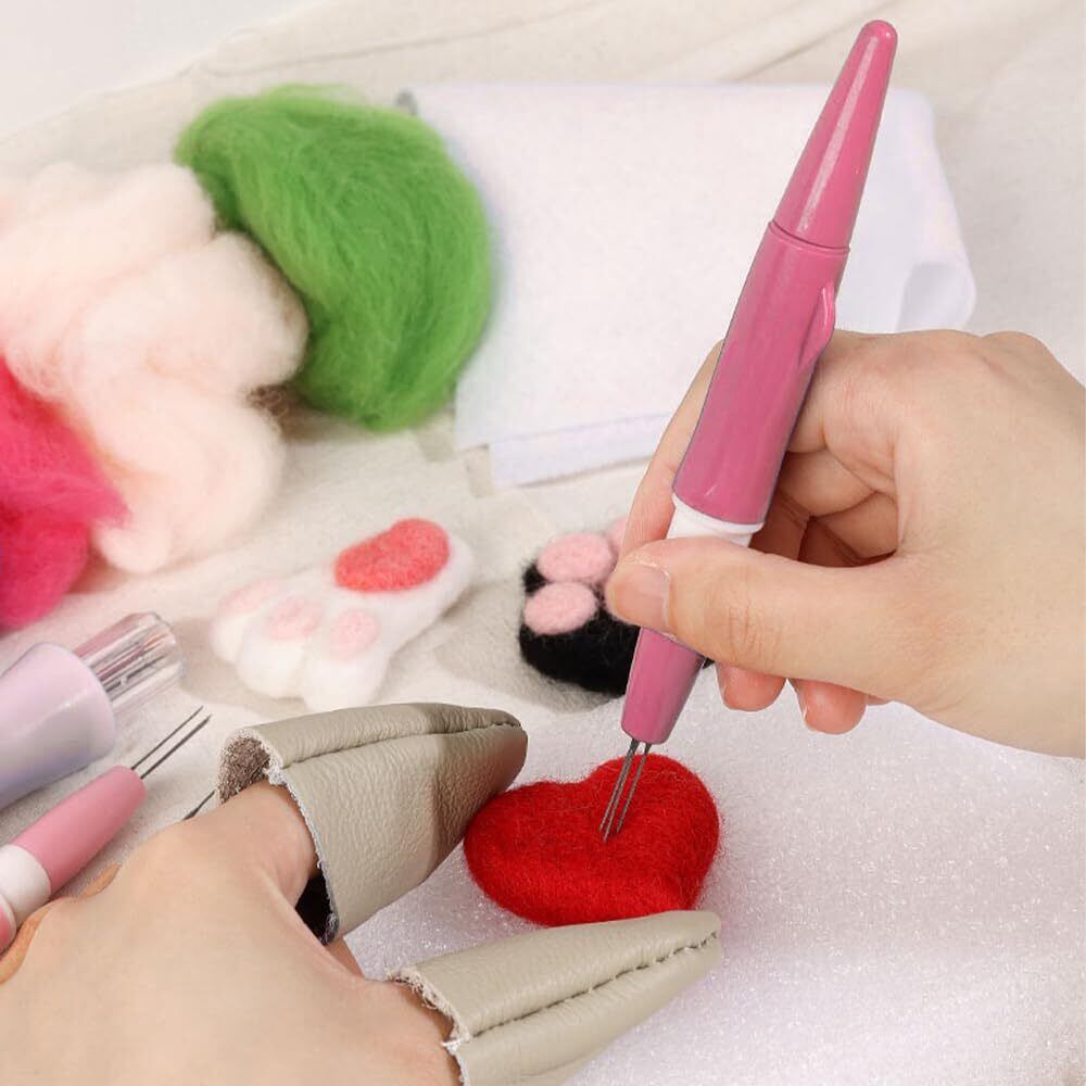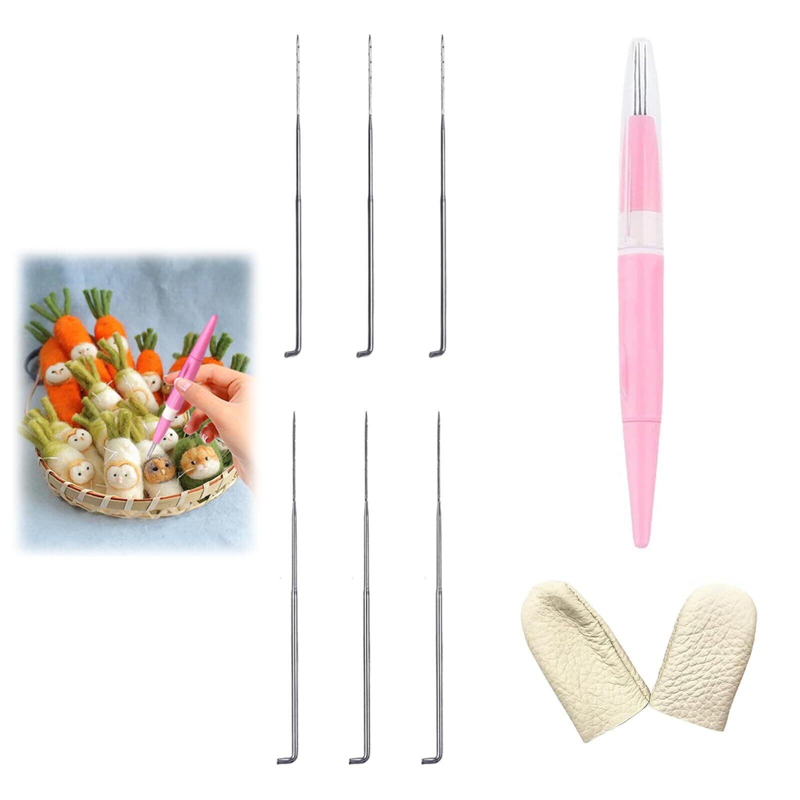 ウールフェルトニードルツール ニードルフェルトペン 3本針+レザー製指サック+2サイズのフェルト針付き 刺繍フェルトニードル 手作り DIY用ツール 初心者入門キット