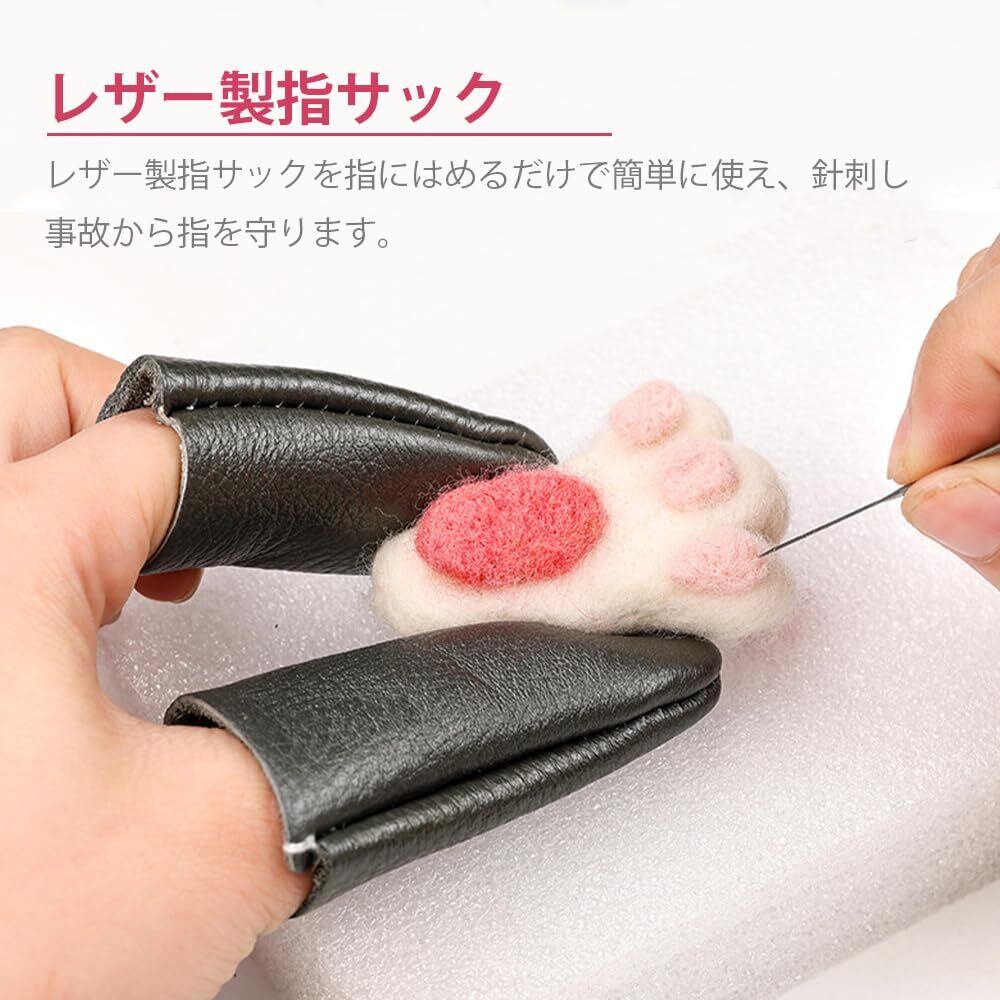 【パッケージ内容】羊毛フェルト3本針1+レザー製指サック1+フェルト針2サイズ各3本。