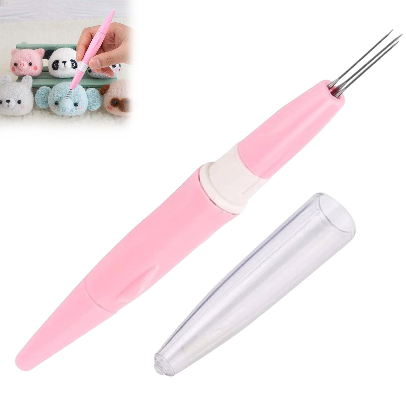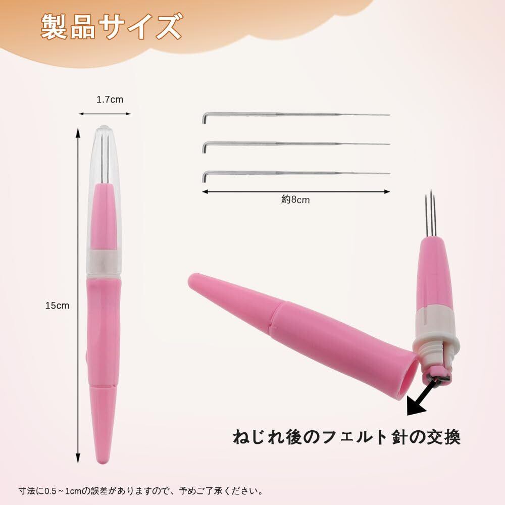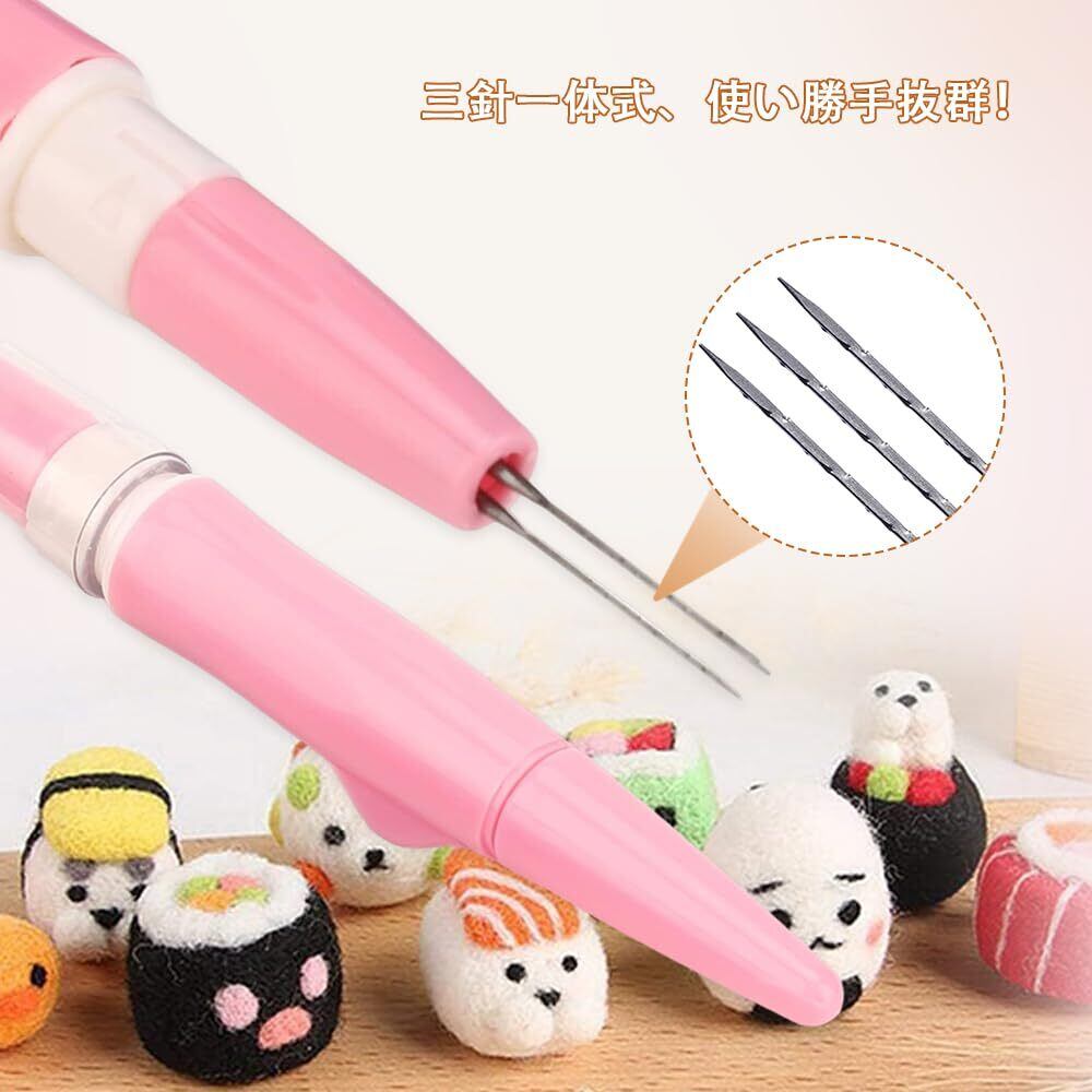 YACHUN フェルトニードル 羊毛フェルト フェルトツール ニードル 3本の針 刺繍フェルトニードル キット フェルト用品 DIY 手芸制作 初心者キット(ピンク)