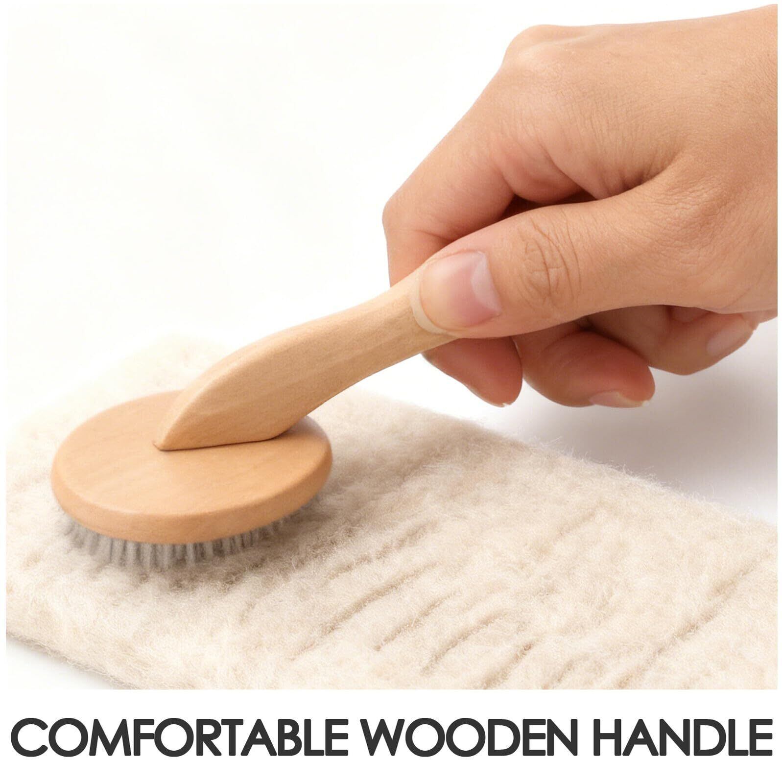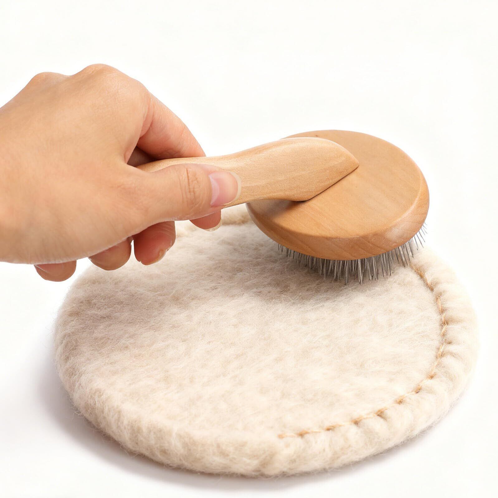 -快適な木製ハンドル:この羊毛ブラシの人間工学に基づいた木製ハンドルデザインは、しっかりとした快適なグリップを し、長時間のニードルフェルト作業中のを最小限に抑えます。衣類用ファブリックブラシ。