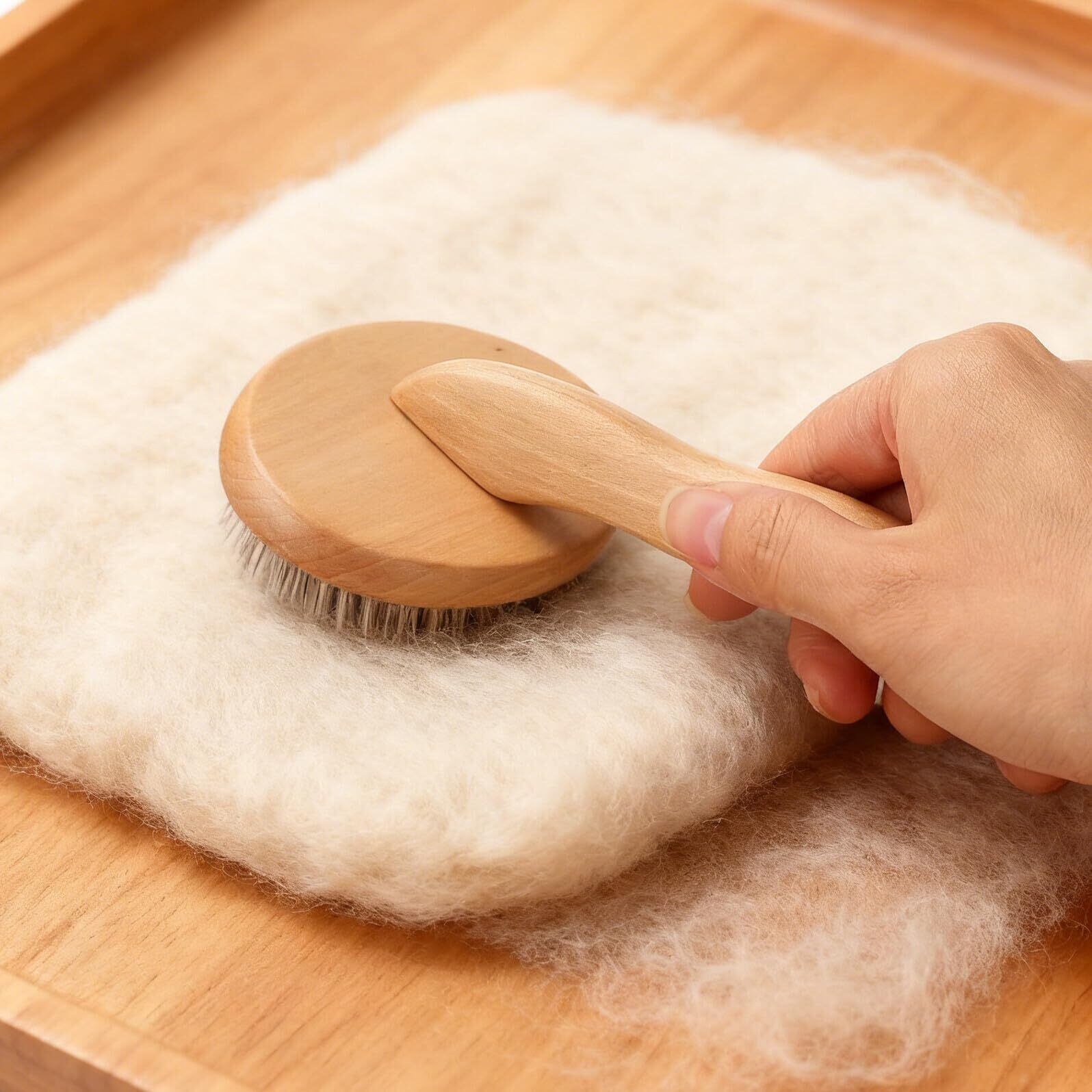信頼性の高いコントロール: この木製フェルトブラシの柔らかく人間工学に基づいた木製ハンドルは、優れたグリップと快適さを提供し、紡績や長時間のクラフトセッションに適したハンドカーダー、ウールニードルフェルトブラシ、ウールフェルトブラシです