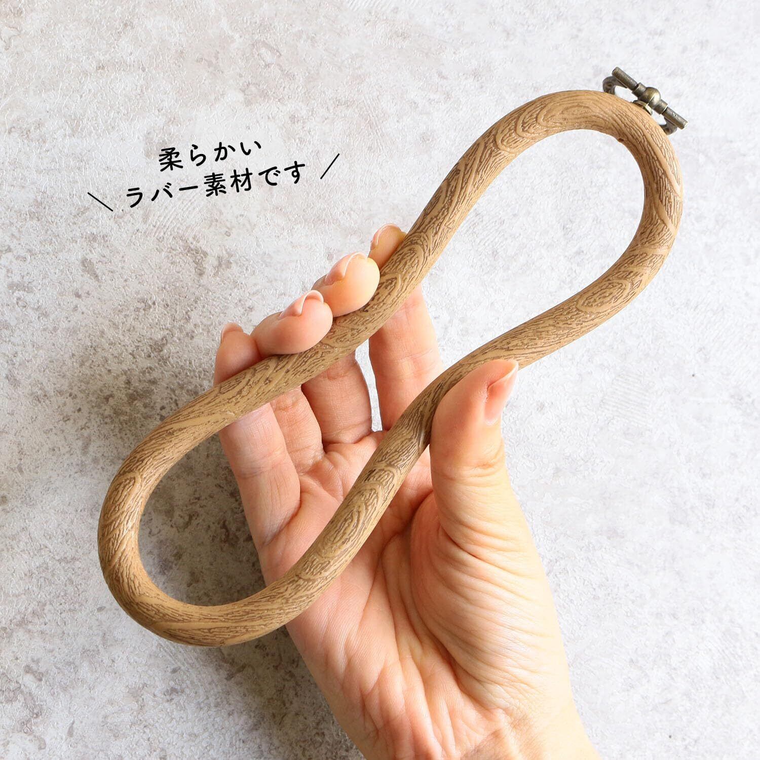 刺しゅうやお気に入りの生地などを挟んでファブリックパネルのような壁掛けのインテリアが楽しめる木製風フレームです。外側・内側のパーツは共に柔らかい素材なので作品をはめ込む際も傷をつけず楽チン。ゴム製ですが、凹凸のある木目風デザインのためアンティークな雰囲気に仕上げてくれます。